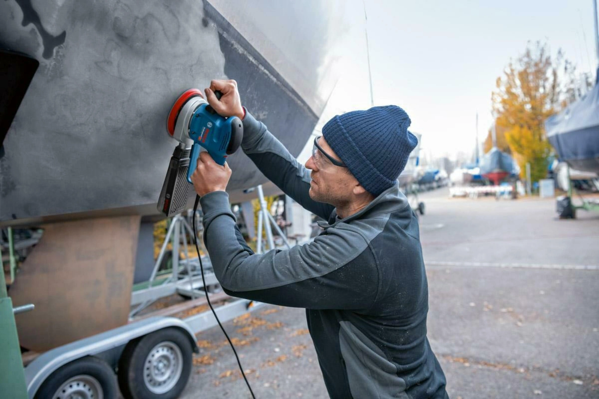 Шлифовальная машина; шлифлист с перфорацией C470, Best for Wood + Paint, 120 (приобретается отдельно в комплекте 5 шт.: 2608608X85); тарельчатый шлифкруг (150 мм) 2608601335; бумажный пылесборный мешок (приобретается отдельно в наборе из 3 шт.: 2605411067); насадка для сбора пыли 2600306007.