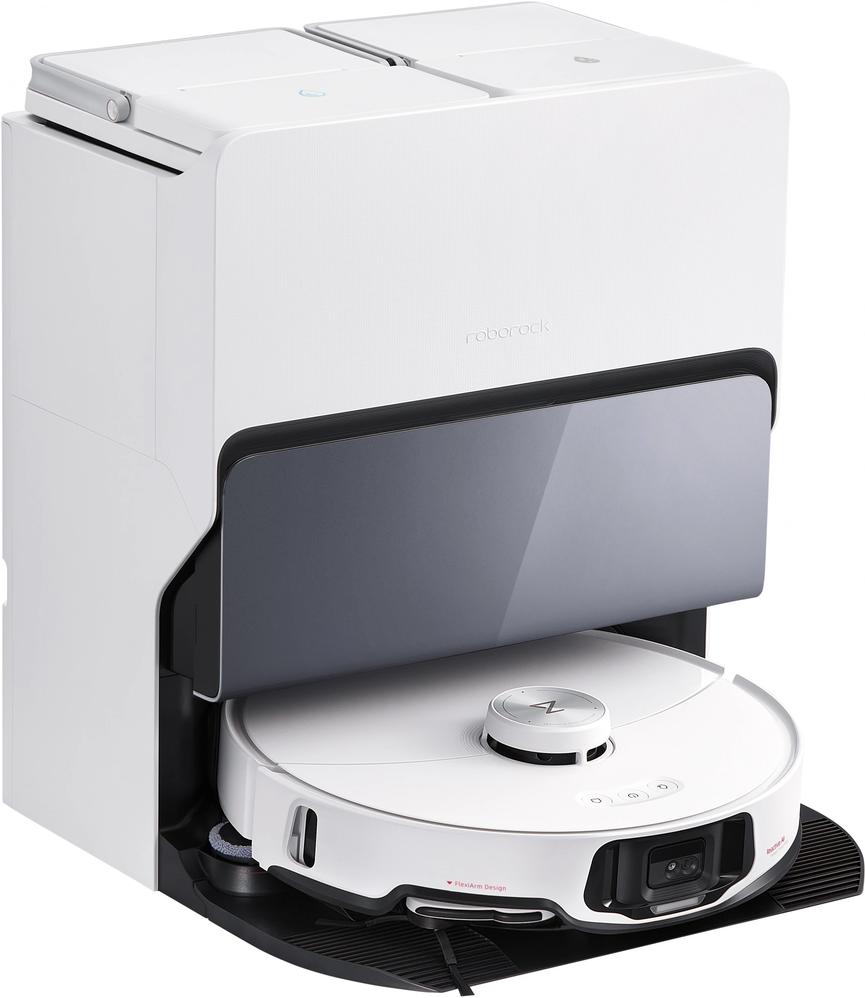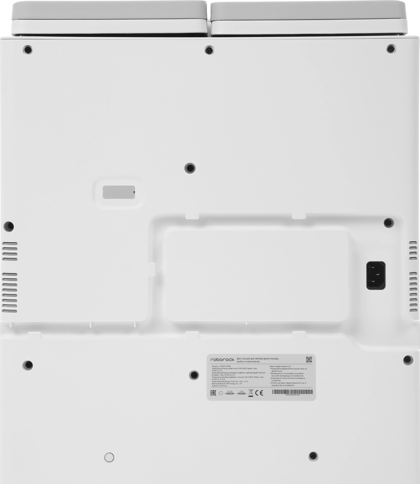Робот: цвет - белый; аккумулятор - литий-ионный аккумулятор 14,4 В /5200 мАч; номинальный вход - 20 В пост. тока, 1,5 А; высокоскоростная очистка 40000 раз/мин, 20 мм подъем над поверхностями; объем пылесборника: 270 мл, объем резервуара для воды: 100 мл, скорость вращения швабры 185 об/мин.