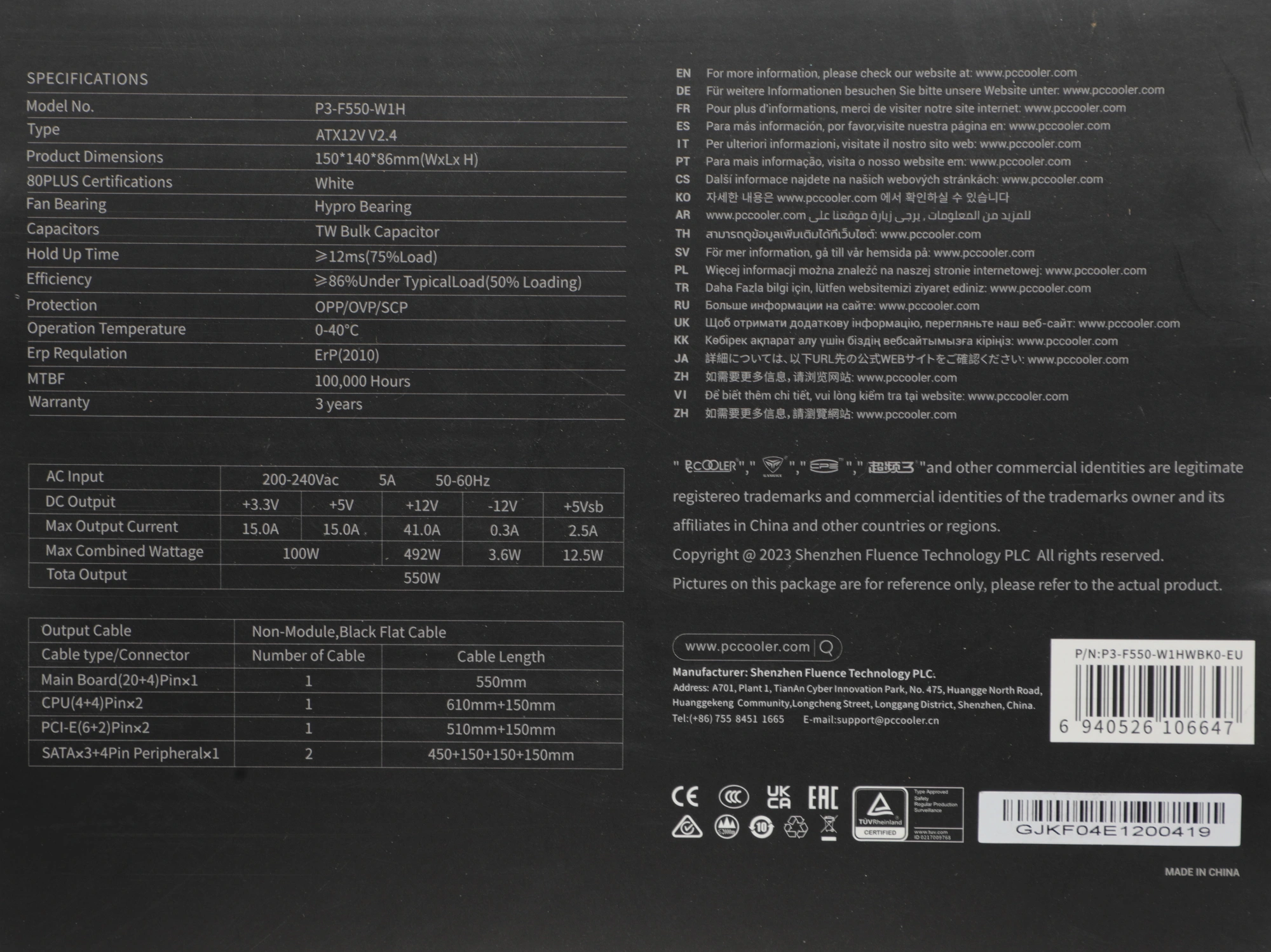Блок питания PcCooler ATX 550W P3-F550-W1H