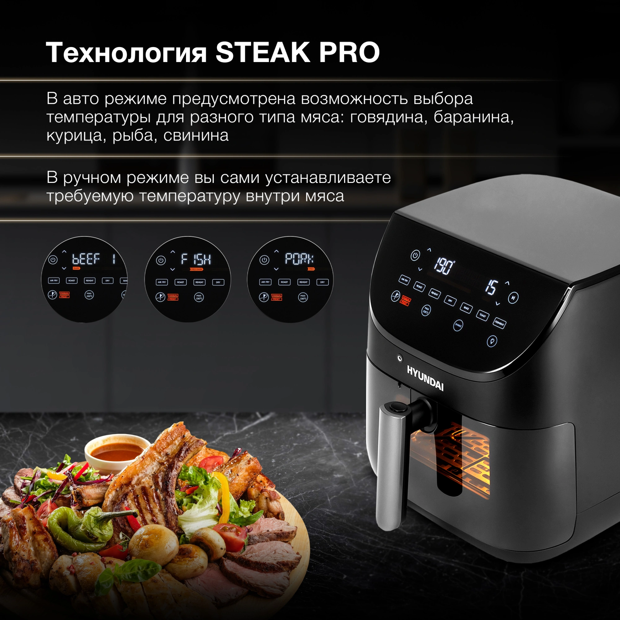 Термощуп может находится в камере приготовления, точно контролировать степень прожарки в режиме реального времени, отключатся по установкам.