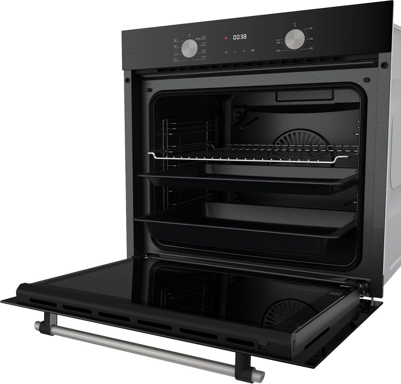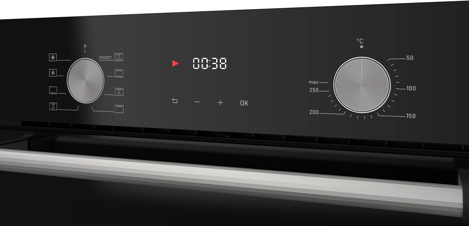 дисплей, полностью стеклянная внутренняя поверхность дверцы духовки, утапливаемые переключатели