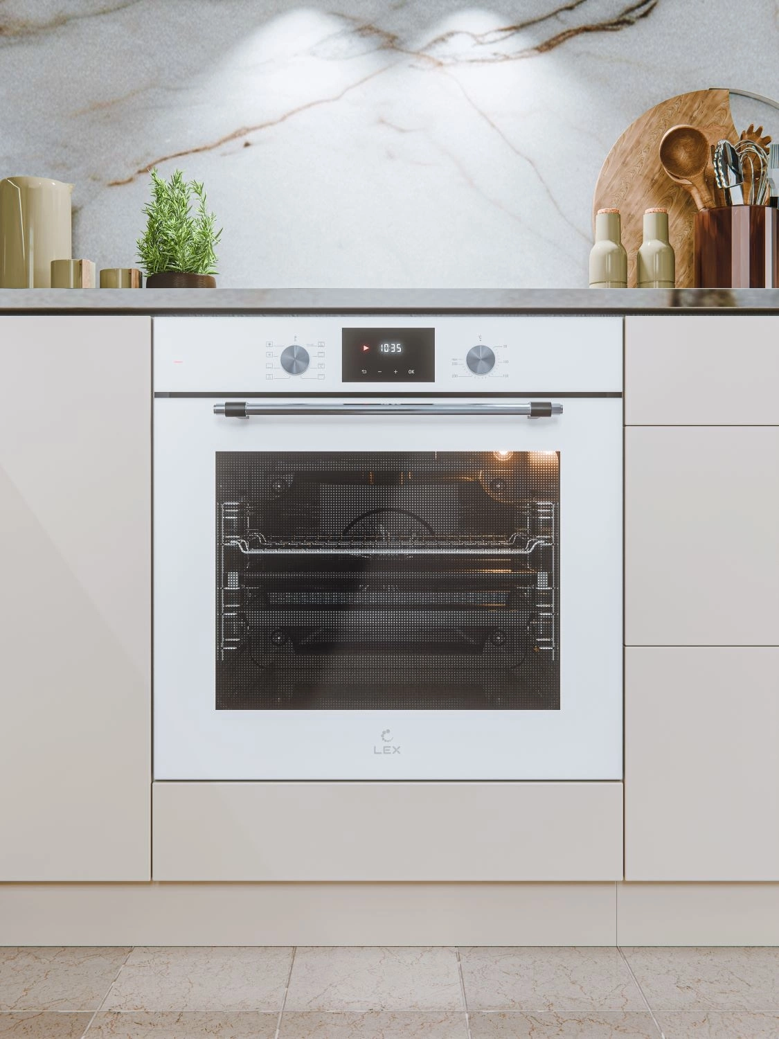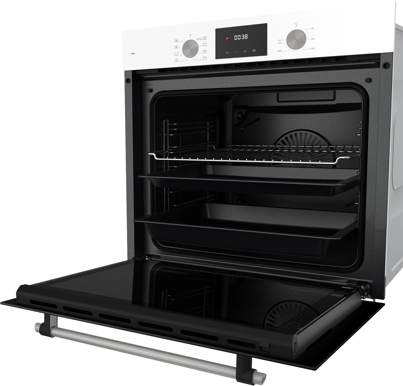 дисплей, полностью стеклянная внутренняя поверхность дверцы духовки, утапливаемые переключатели