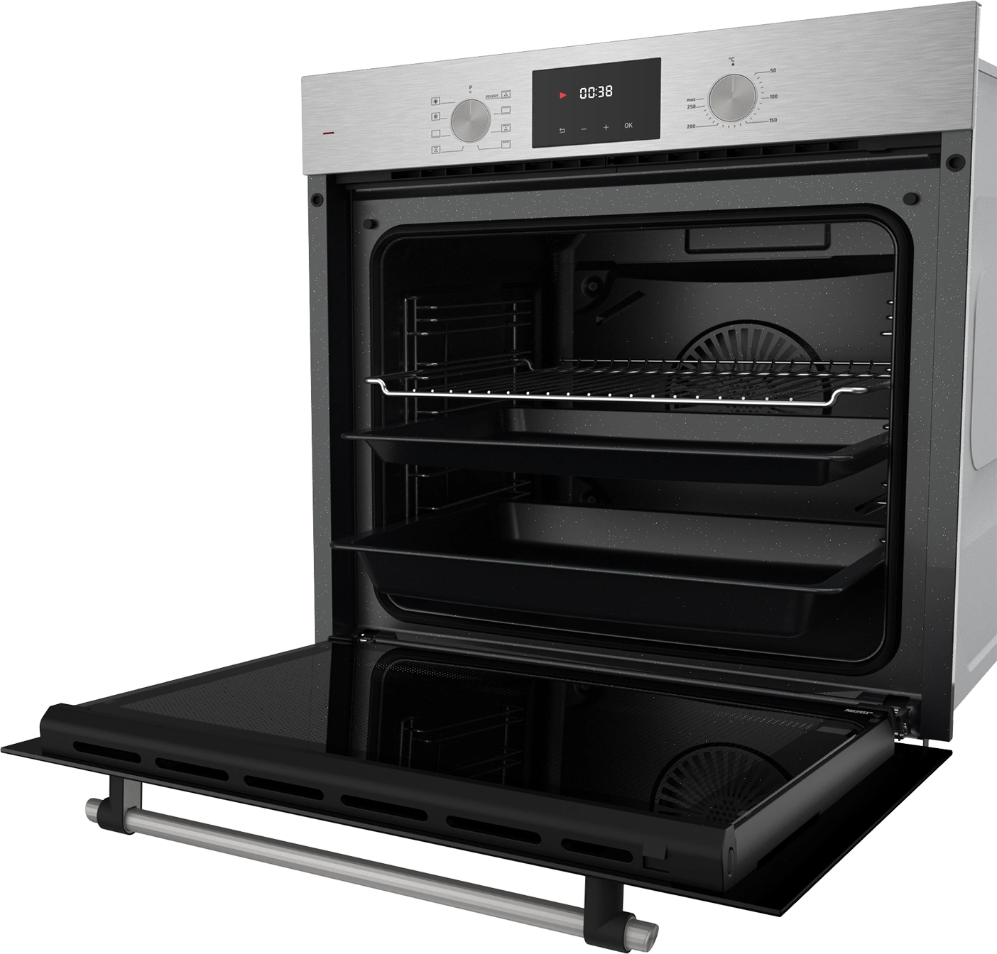 дисплей, полностью стеклянная внутренняя поверхность дверцы духовки, утапливаемые переключатели