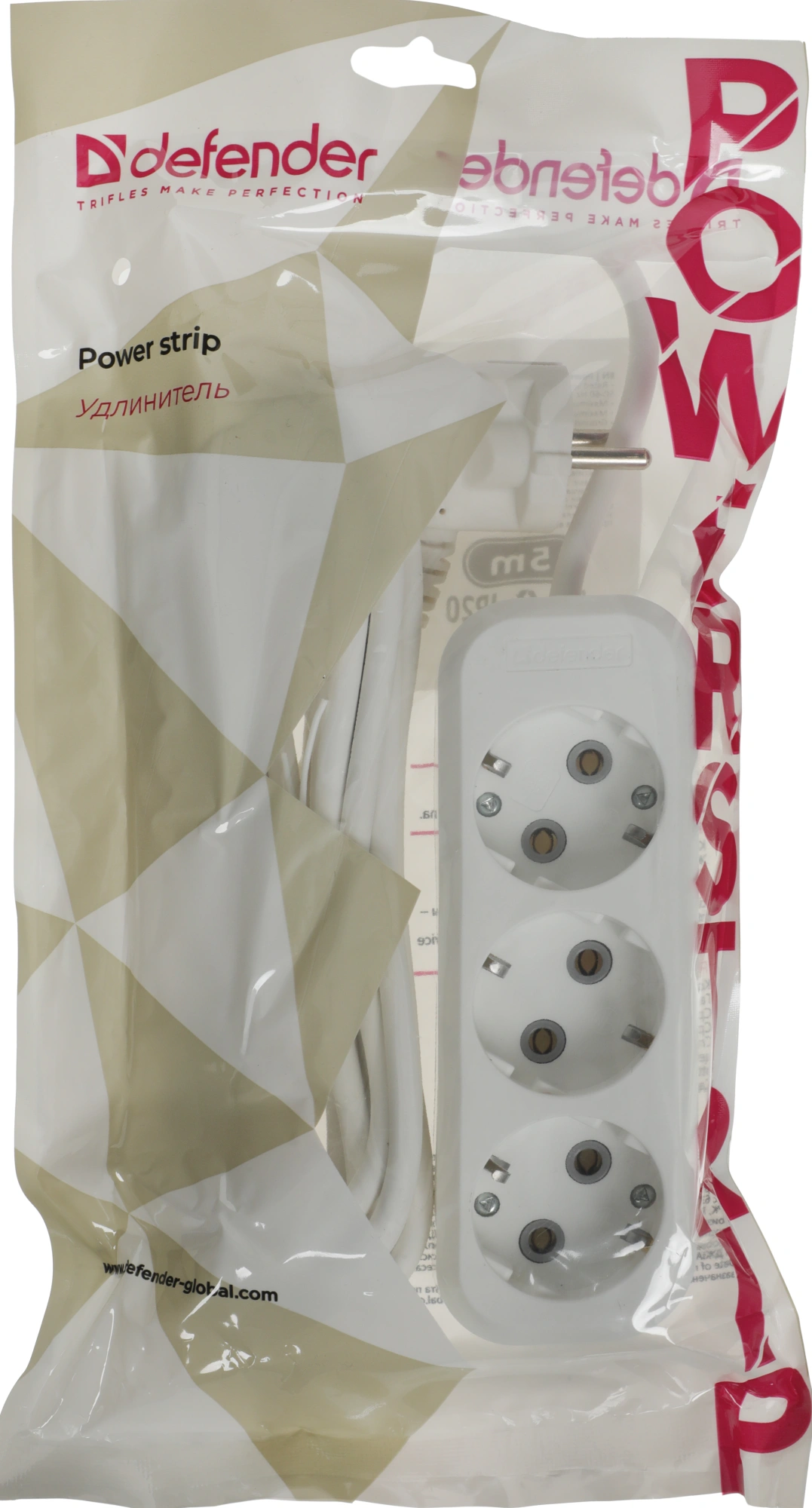 5м (3 розетки) белый (пакет ПЭ)