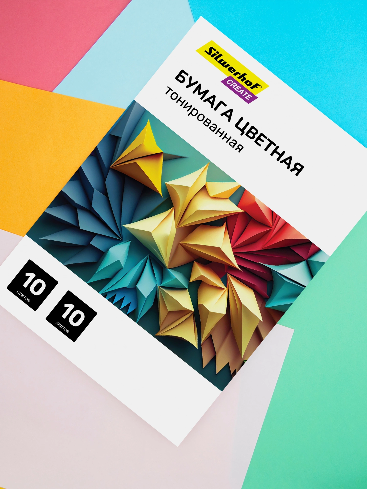 Бумага цветная Silwerhof тонир. 10л. 10цв. A4 Create 80г/м2 папка