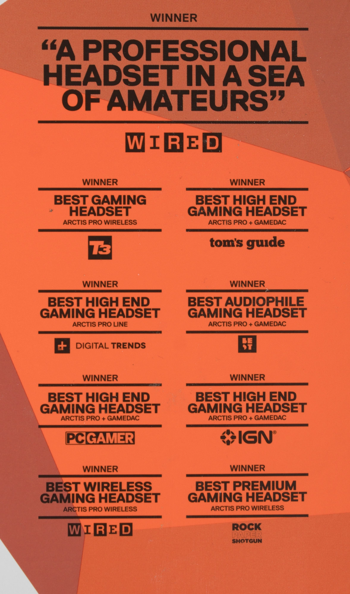 Dual Wireless: 2.4G lossless + Bluetooth; Лучшие в индустрии hi-res динамики; Конструкция из очень легкого сплава алюминия и стали. Система взаимозаменяемой двойной батареи.
