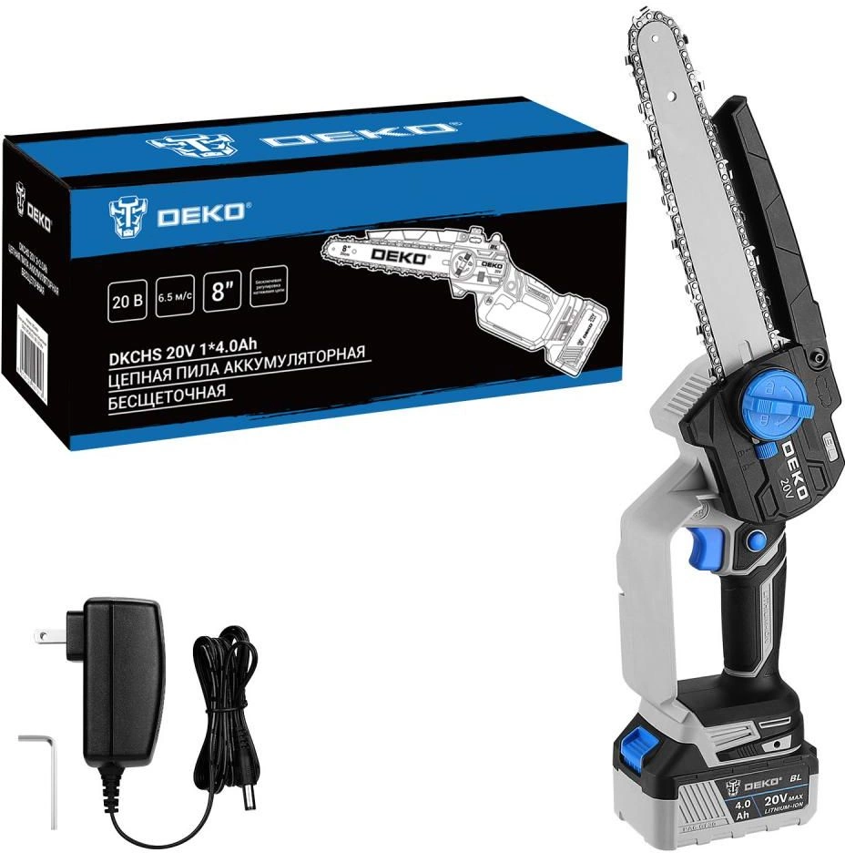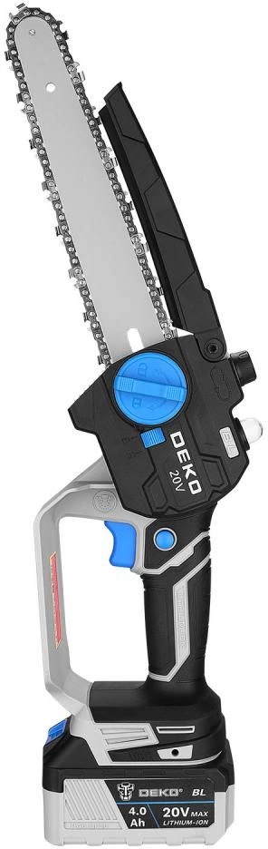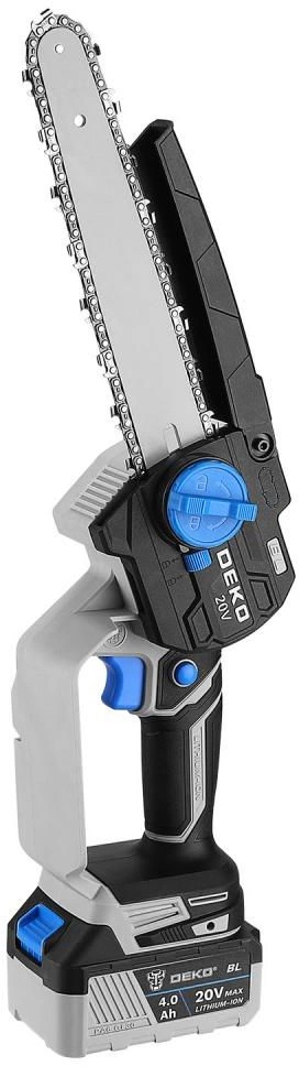 Пила цепная аккумуляторная бесщеточная DEKO DKCHS 20V, 20В, 1x4.0Ач применяется при работе в мастерской или в саду для распиливания различных материалов. Предназначена для пропилов в древесине и пластмассе.
