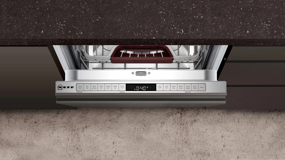 времени до конца программы, звуковой сигнал, луч на полу, наличия ополаскивателя, наличия соли, этапов программы