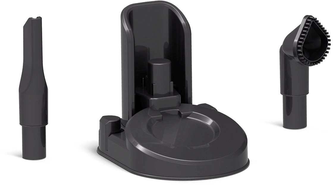 легко очищаемый пылесборник, место для хранения насадок, напольная подставка