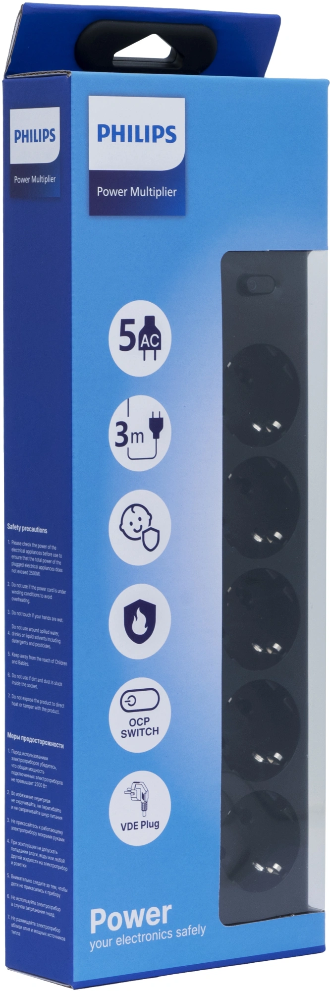 3м (5 розеток) черный (коробка)