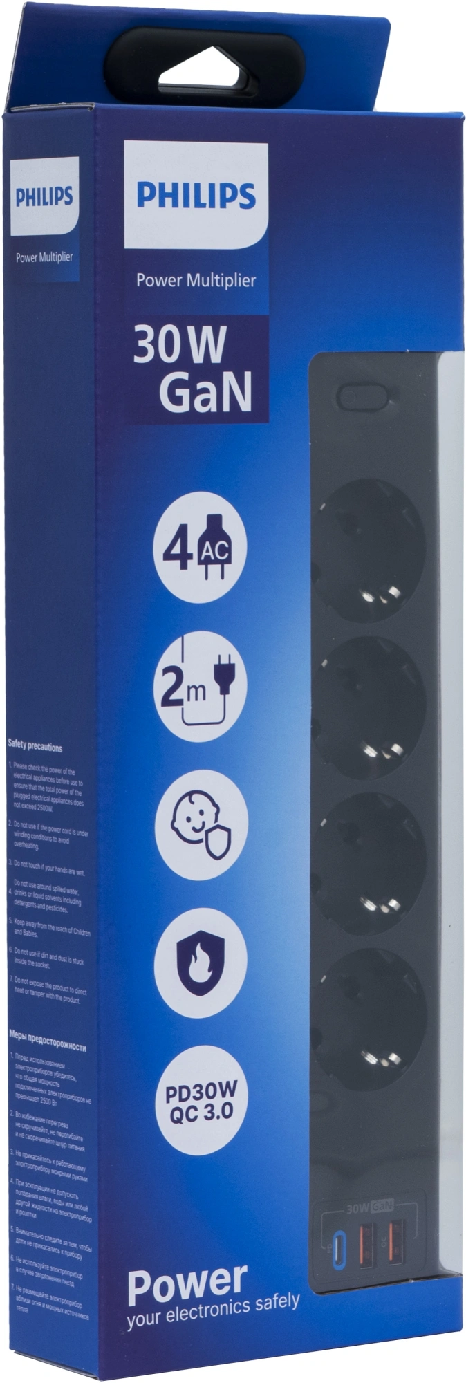 2м (4 розетки) черный (коробка)