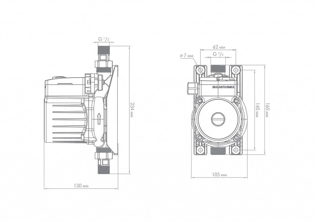 встроенная защита от "сухого хода", защита двигателя от перегрева