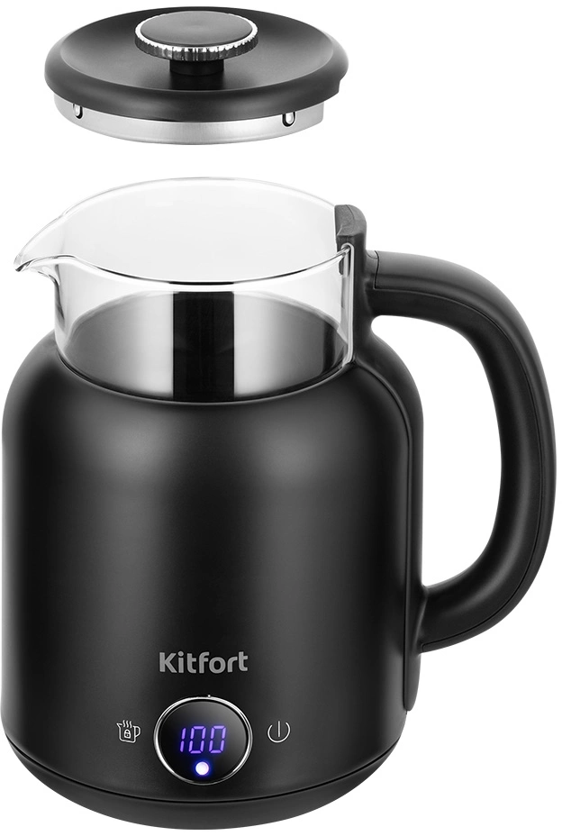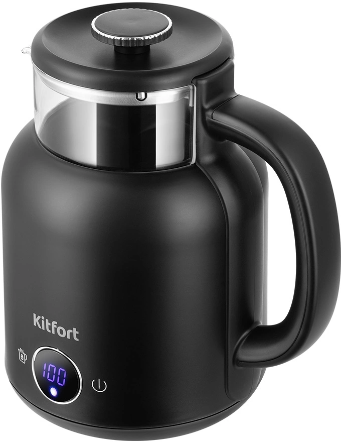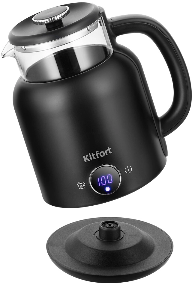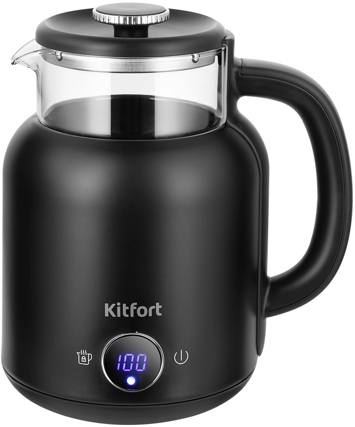Электрический чайник с электронным терморегулятором Kitfort КТ-6725 может не только вскипятить воду, но и нагреть её до температуры 45, 55, 65 и 75°С, что очень удобно при заваривании различных сортов чая.
