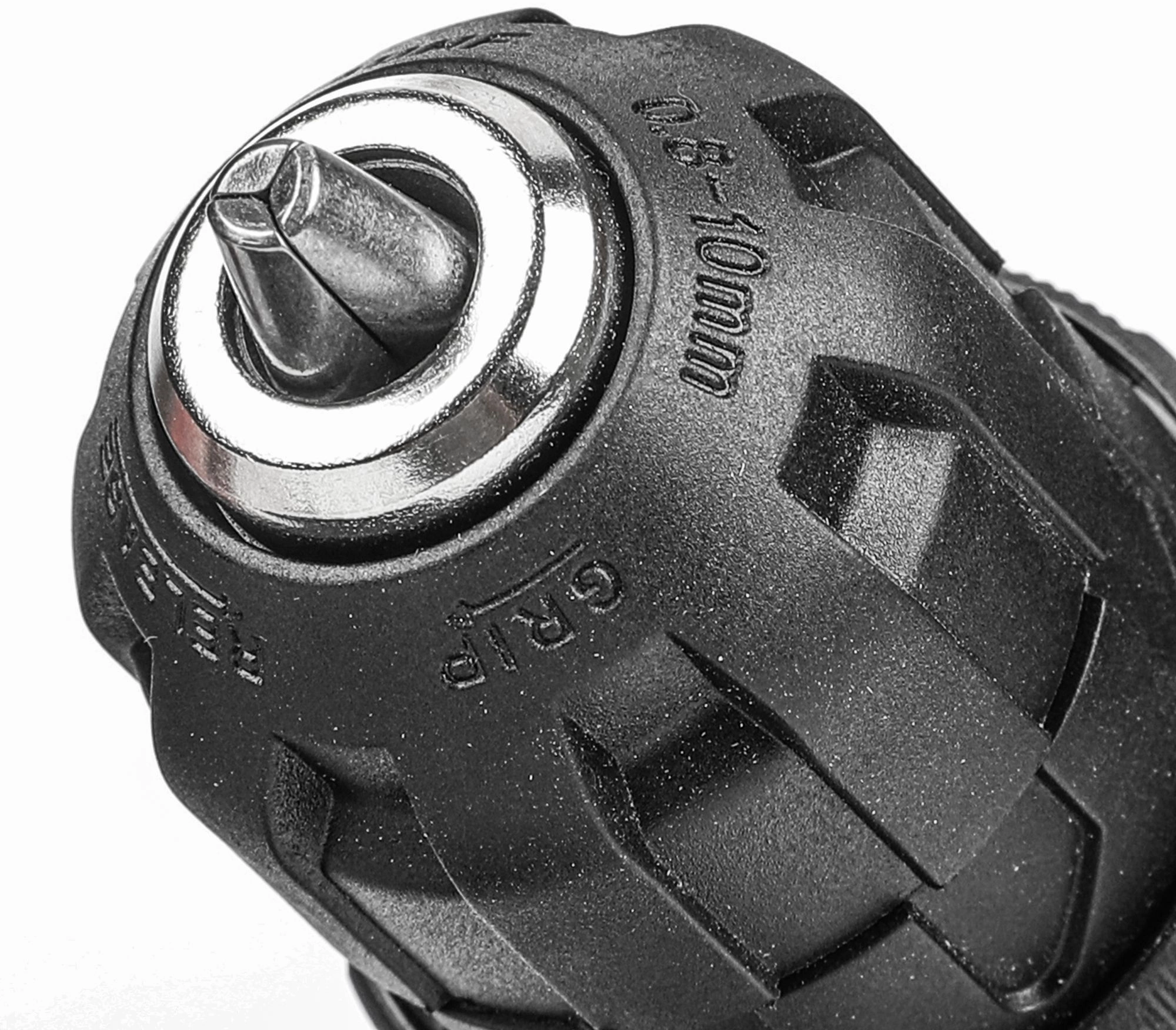 Дрель аккумуляторная, бита двухсторонняя, магнитный адаптер для бит, сверло по дереву, сверло по металлу, 2 аккумулятора, зарядное устройство, руководство по эксплуатации, кейс.
