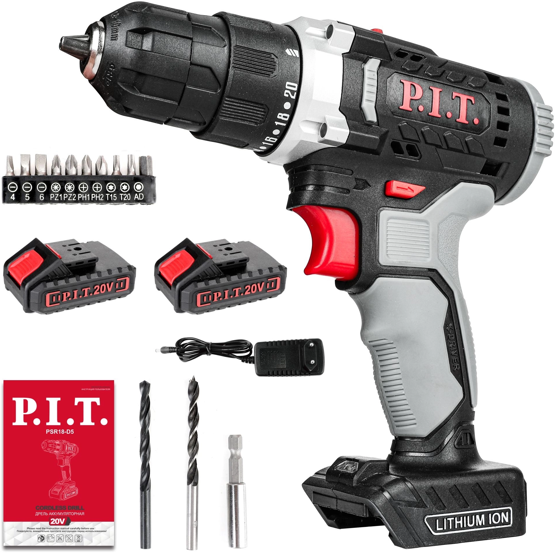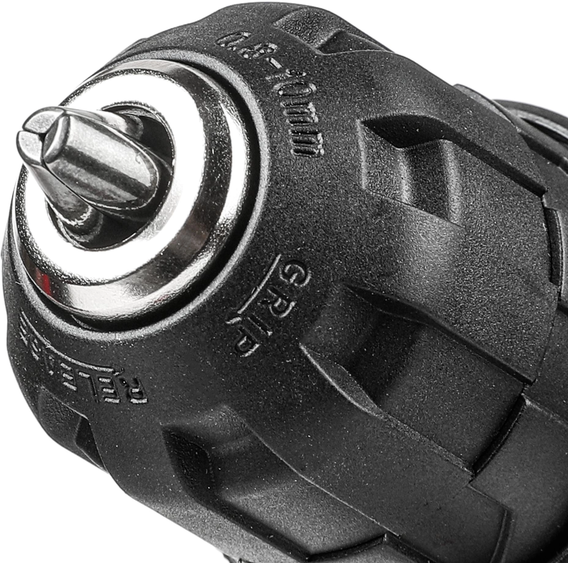 Дрель аккумуляторная, пластиковый кейс, зарядное устройство, 2 аккумулятора, руководство по эксплуатации, набор бит (10 шт.), магнитный адаптер, сверло по дереву, сверло по металлу.