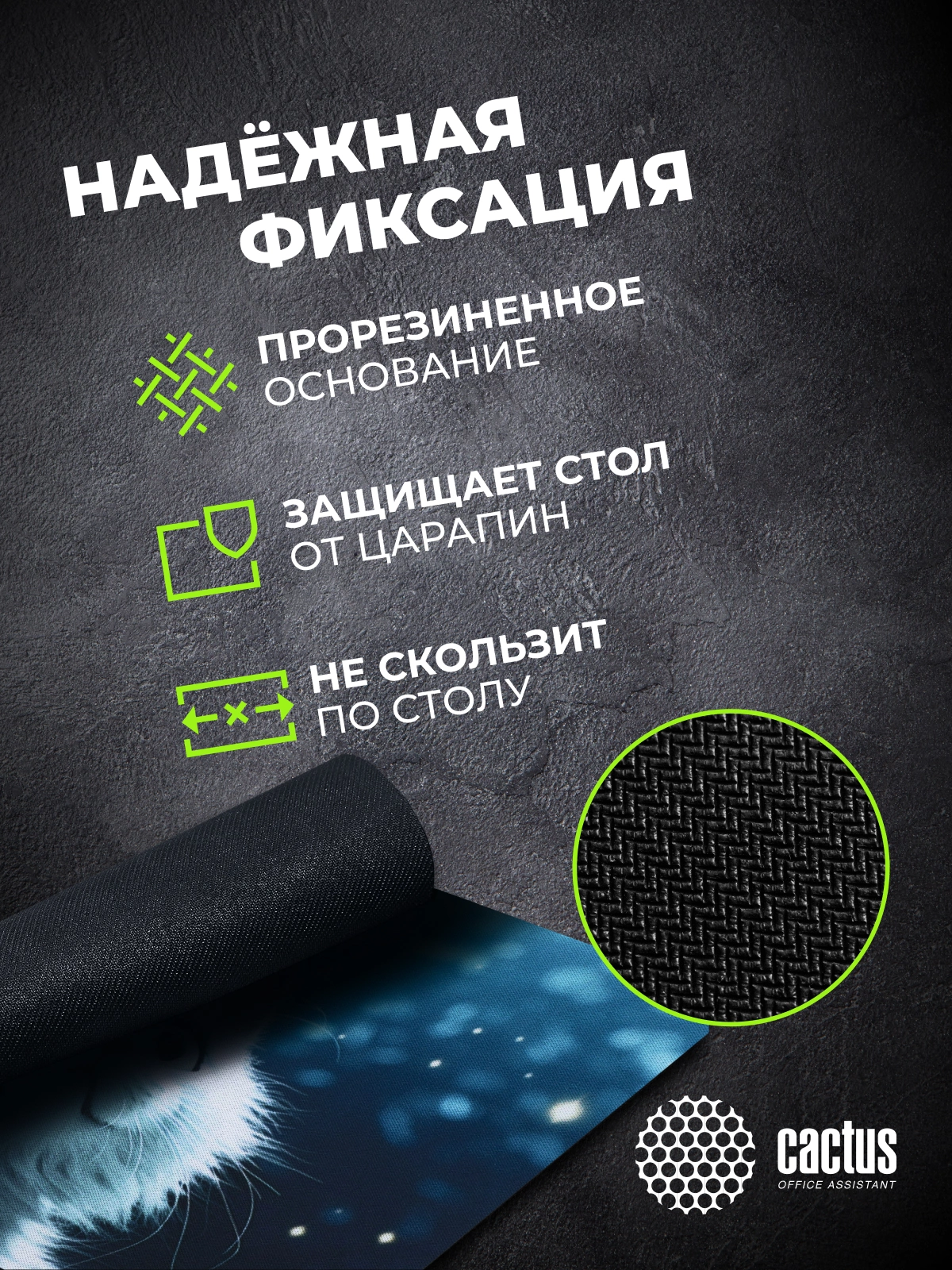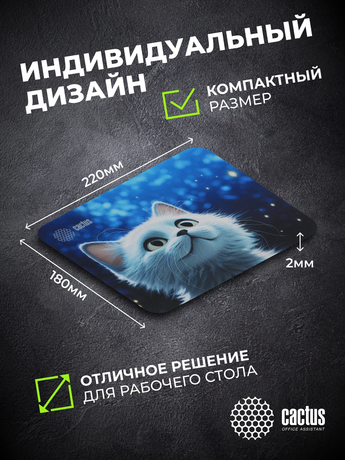 Коврик для мыши Cactus идеально подойдёт фанатам логических головоломок, квестов и стратегий. Он также будет полезен и пользователям офисных программ и графических редакторов, помогая более полно взаимодействовать с компьютерной мышью и точно позиционировать курсор.