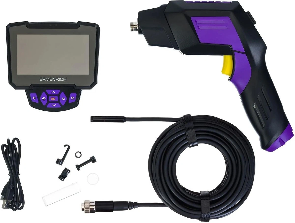 Видеоэндоскоп, кабель microUSB, крюк, магнит, боковое зеркало, защитная крышка, инструкция по эксплуатации и гарантийный талон