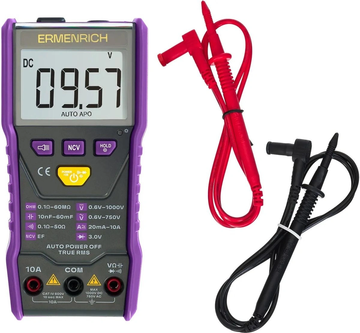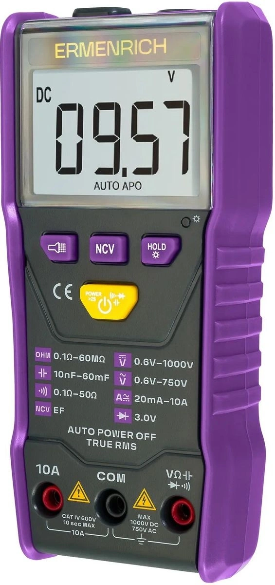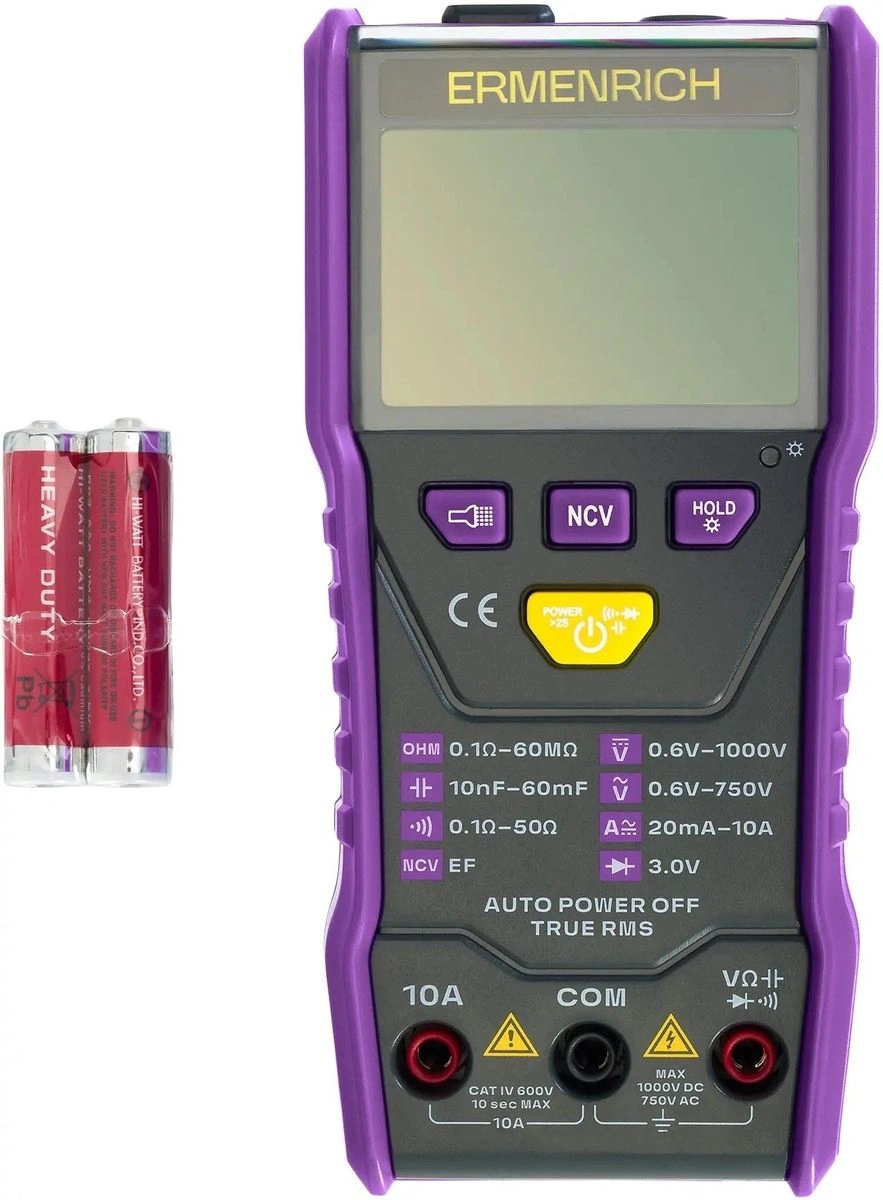 Измерение напряжения, тока, сопротивления и емкости; Автоматический выбор предела измерений; Расчет по истинному среднеквадратичному значению (True RMS); Выявление обрыва кабеля, короткого замыкания; Тестирование рабочего состояния диодов; Бесконтактный тест напряжения (NCV); Встроенный фонарик