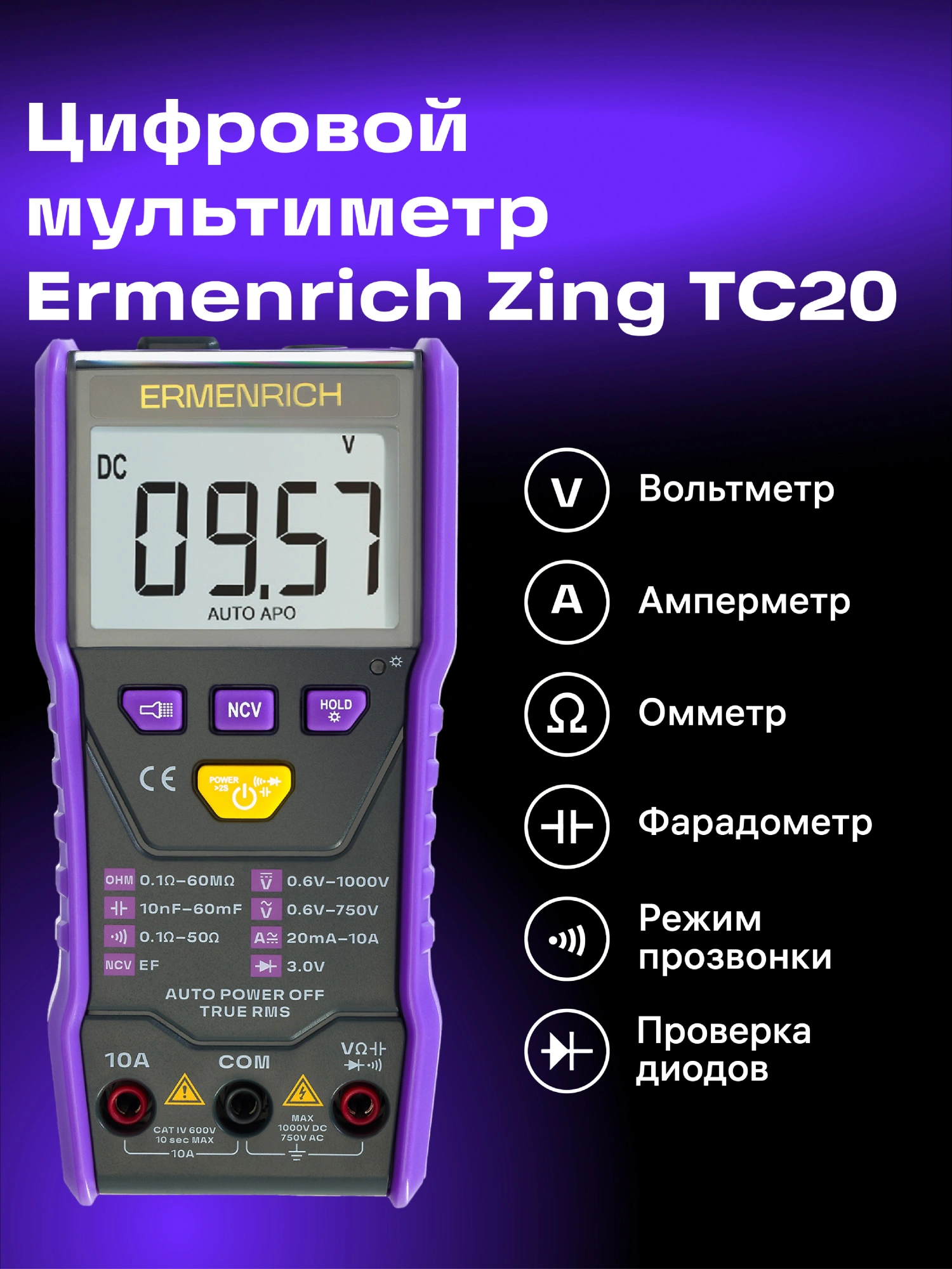 звуковая индикация, индикация полярности, функция True RMS