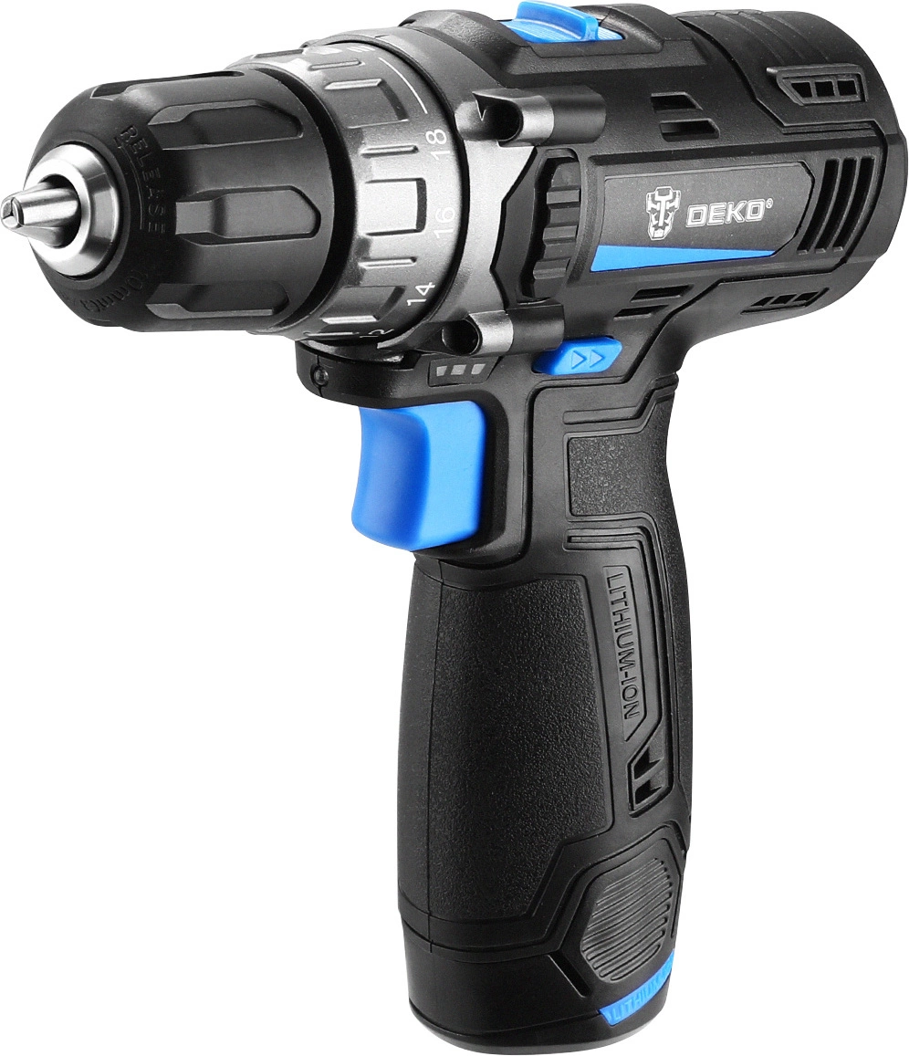 Аккумуляторная дрель-шуруповерт, АКБ (установлен), зарядное устройство, бита, руководство по эксплуатации.