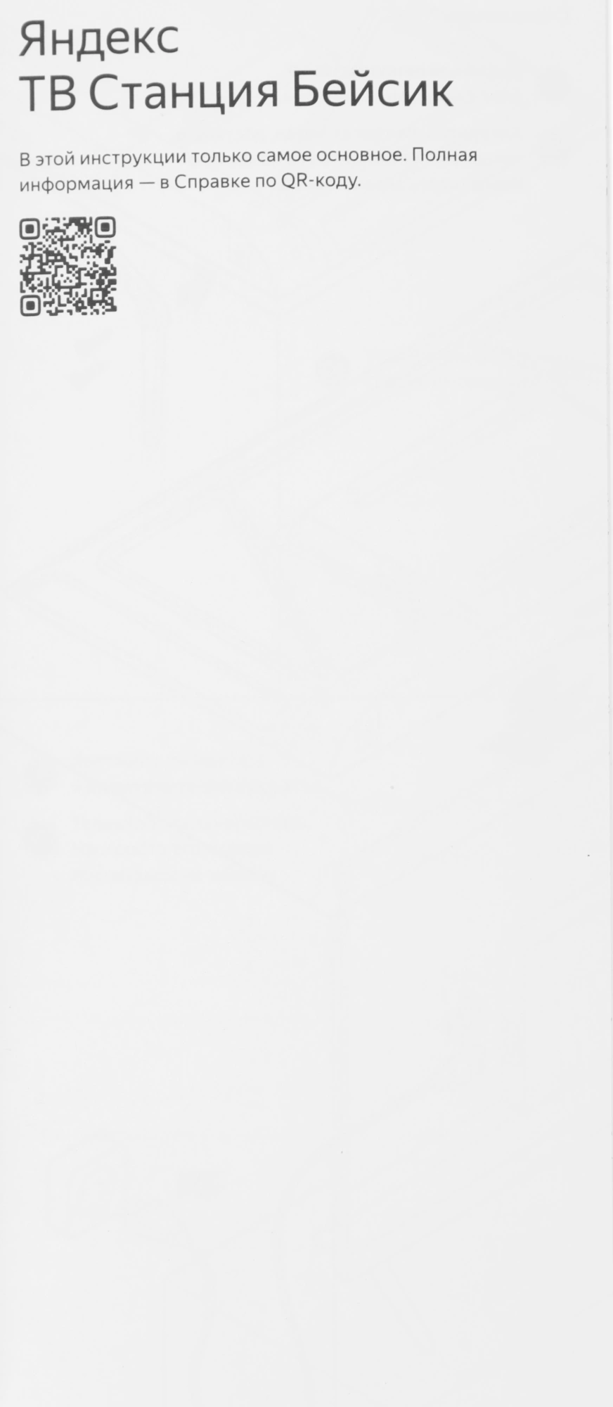 ТВ Станция Бейсик, Две ножки и комплект винтов, Пульт и 2 батарейки ААА (внутри), Кабель питания, Краткое руководство пользователя