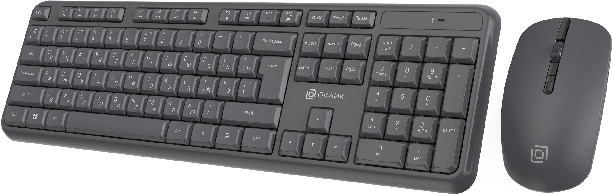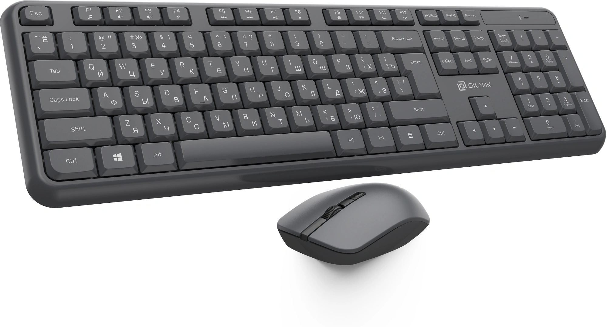 Беспроводной комплект с абсолютно бесшумными клавишами и приятным нажатием. Клавиатура поддерживает мультимедийный функционал клавиш F1 - F12, имеет выдвижные ножки для регулировки угла наклона и высокий ресурс клавиш. Мышь оснащена 4 клавишами, в том числе колесо для прокрутки и тефлоновыми ножками