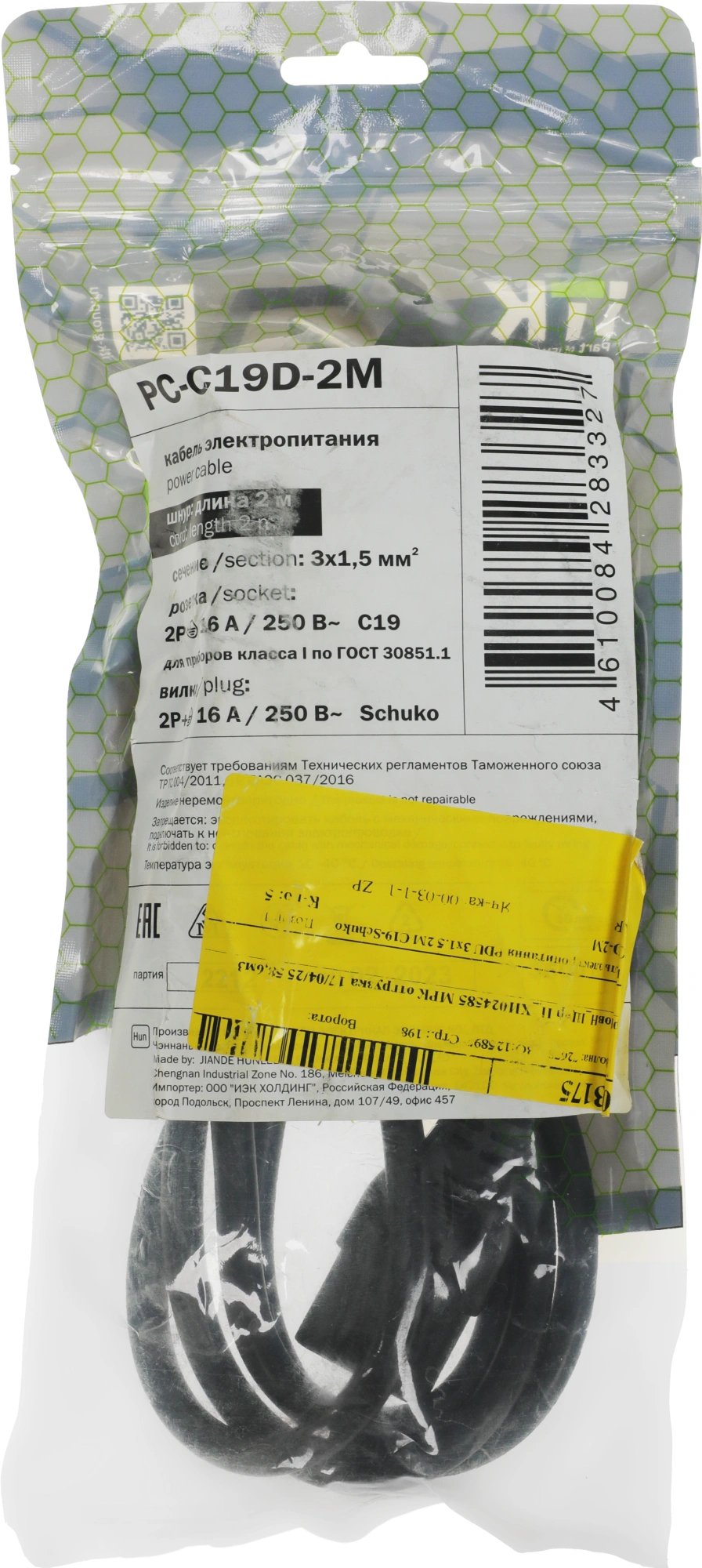 C19-Schuko проводник.:3x1.5мм2 2м 230В 16А черный