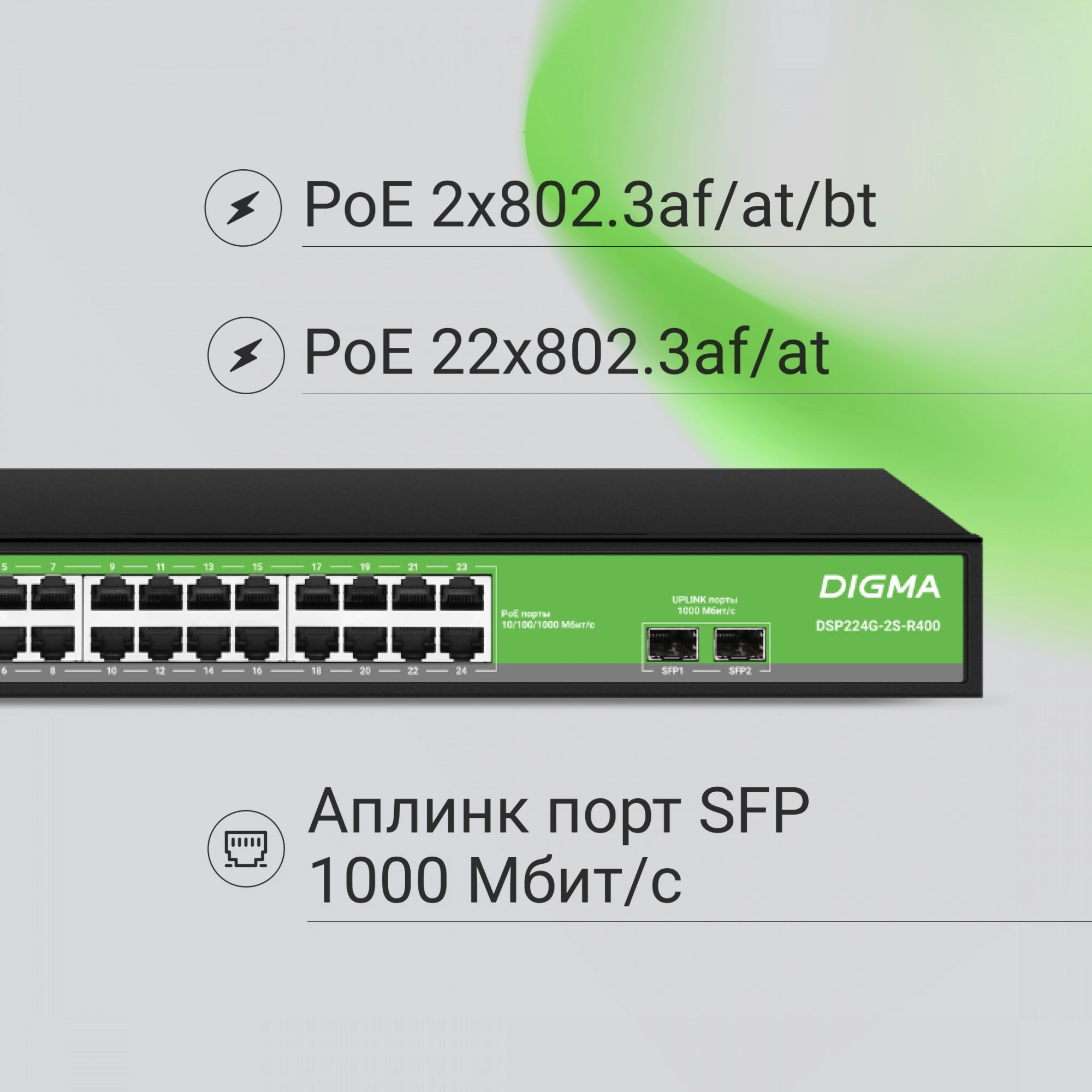 (L2) 24x1Гбит/с 2SFP 24PoE 24PoE+ 2PoE++ 400W неу...
