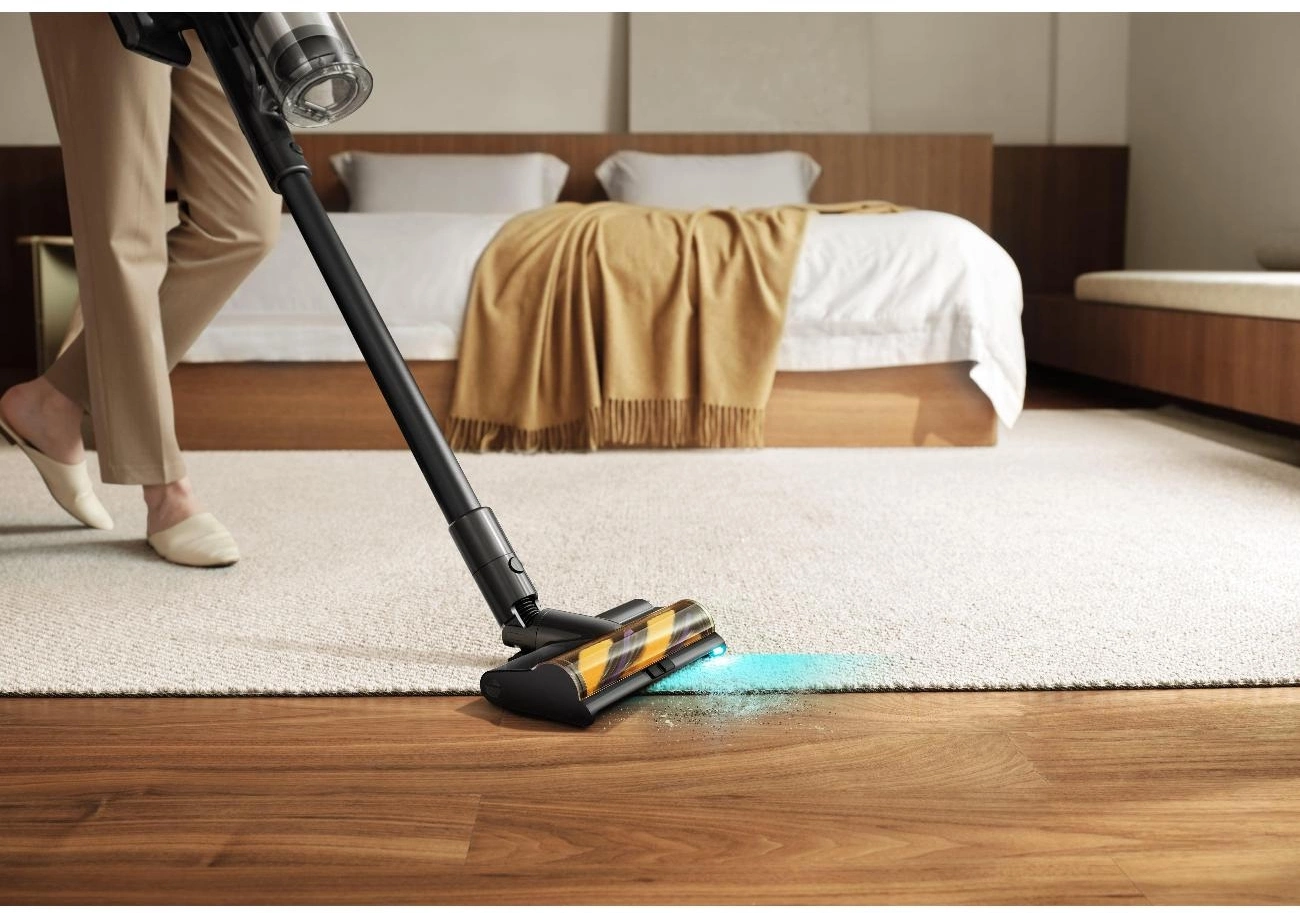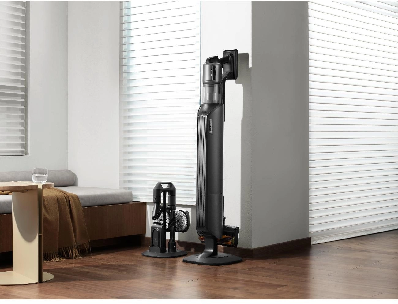 место для хранения насадок, напольная подставка, подсветка зоны уборки