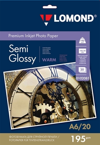Фотобумага Lomond 0102081 10x15/195г/м2/20л./тепло-белый полуглянцевое для струйной печати
