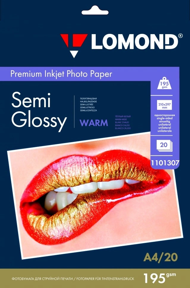 Фотобумага Lomond 1101307 A4/195г/м2/20л./тепло-белый полуглянцевое для струйной печати