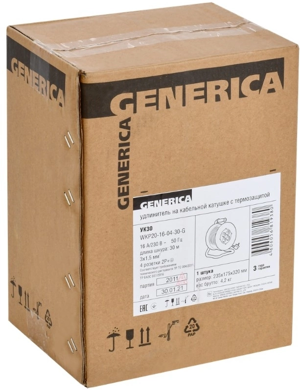 (WKP20-16-04-30-G) 3x1.5кв.мм 4розет. 30м ПВС 16A ...