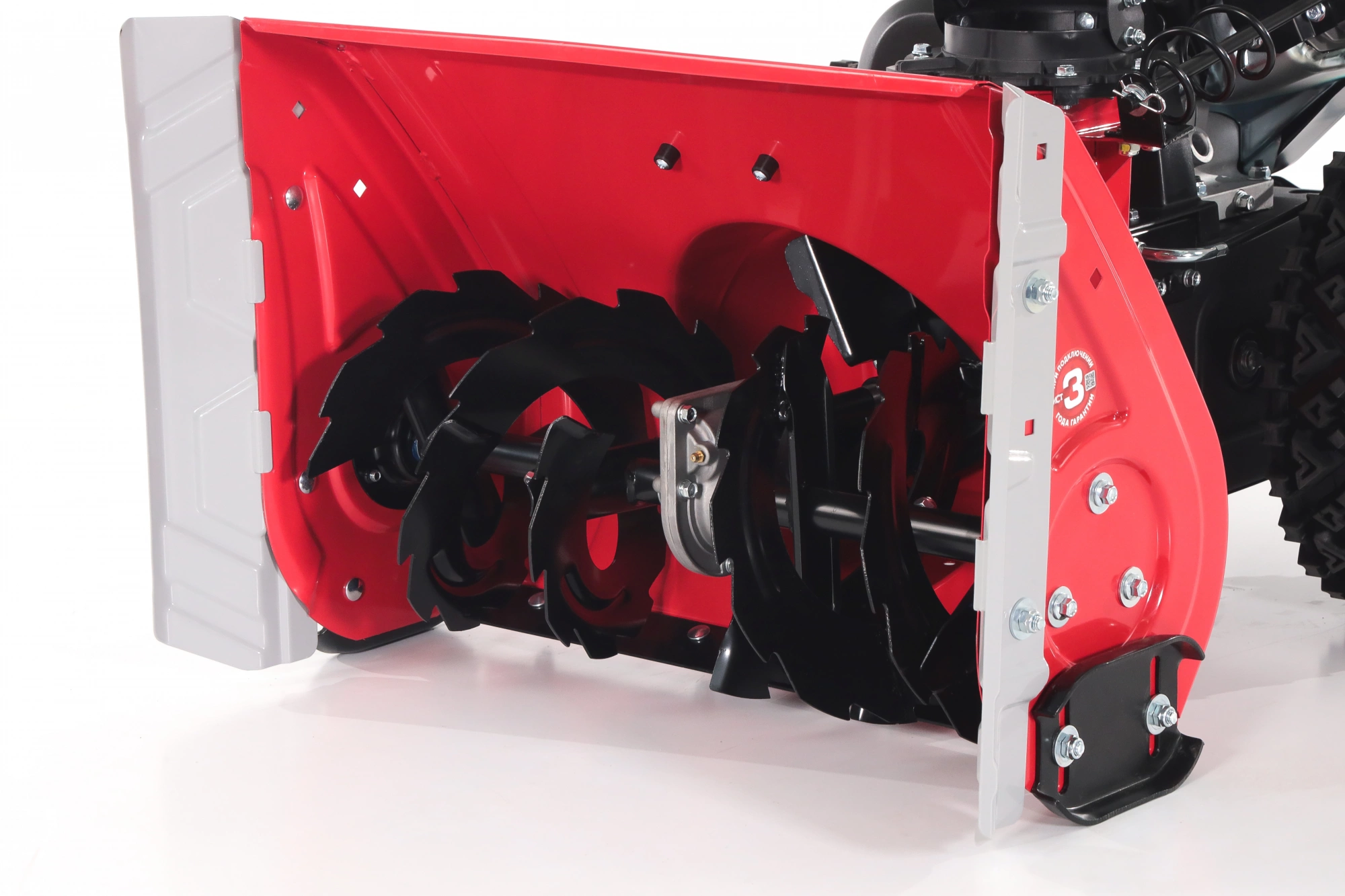 Двухступенчатая система выброса со стальным шнеком позволит справиться даже с уборкой плотного слежавшегося снега и измельчением ледяного наста