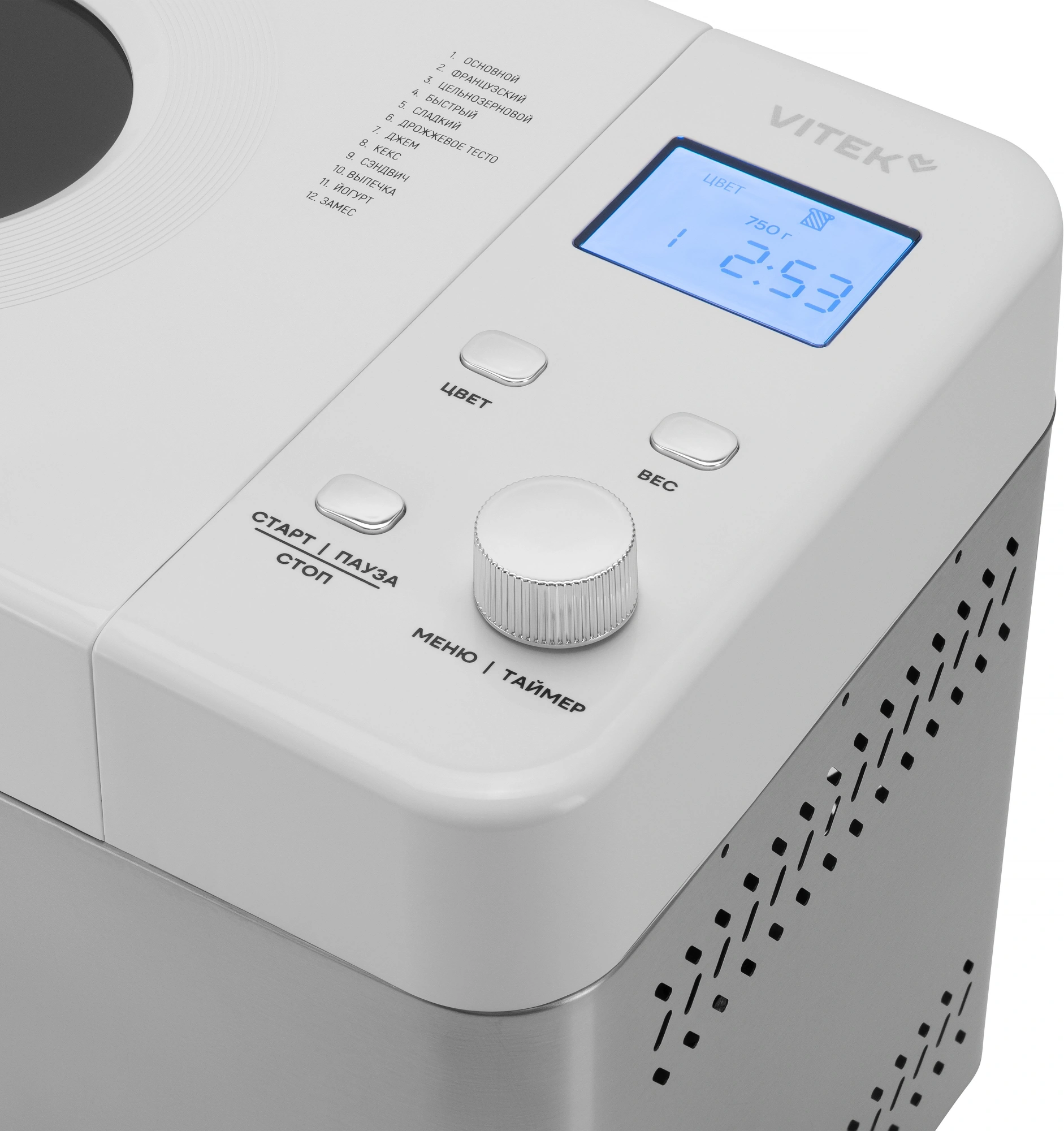 веса выпечки, включения, времени программы, режима работы, текущей программы, этапов программы