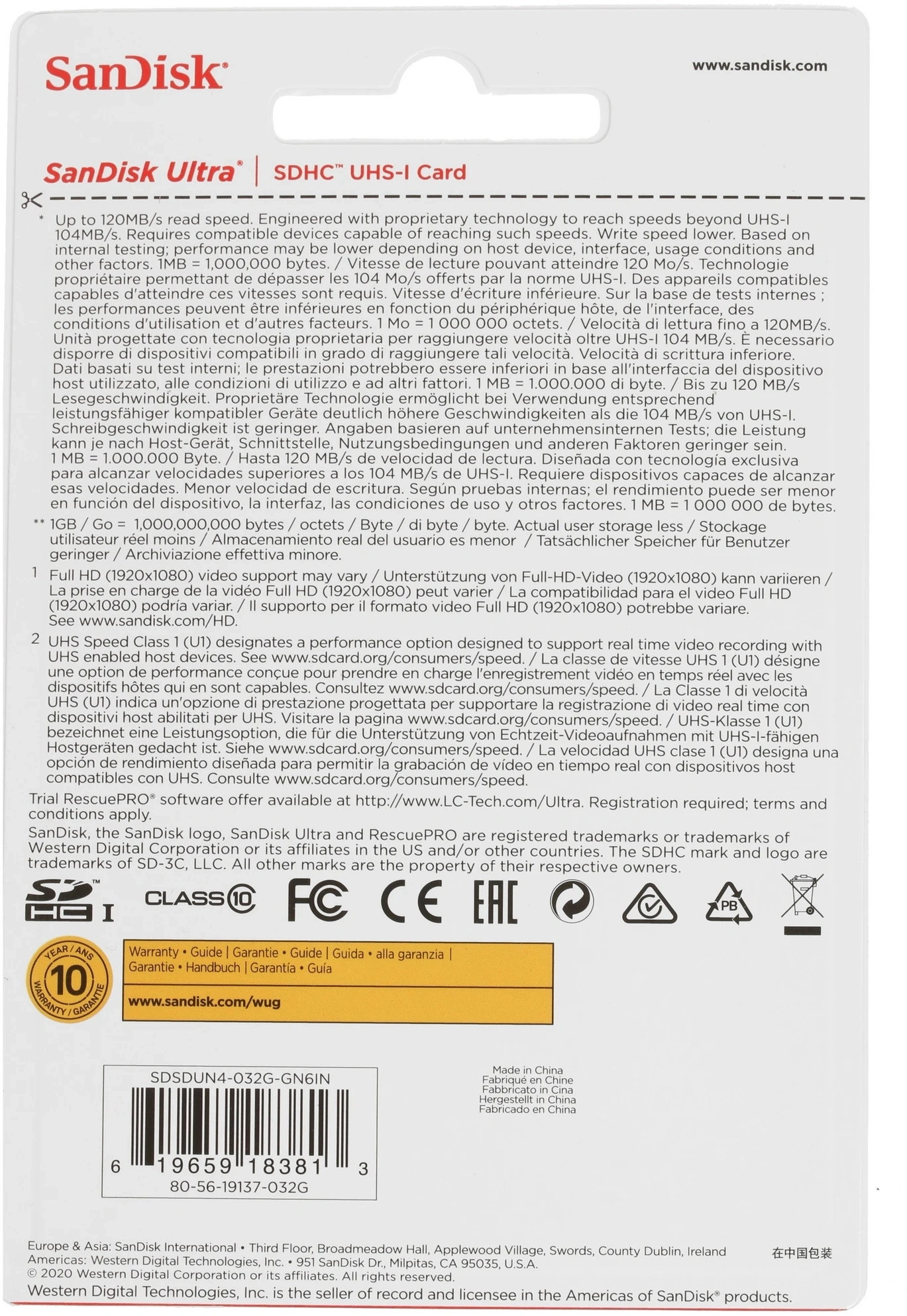 Флеш карта SDHC 32GB Sandisk SDSDUN4-032G-GN6IM