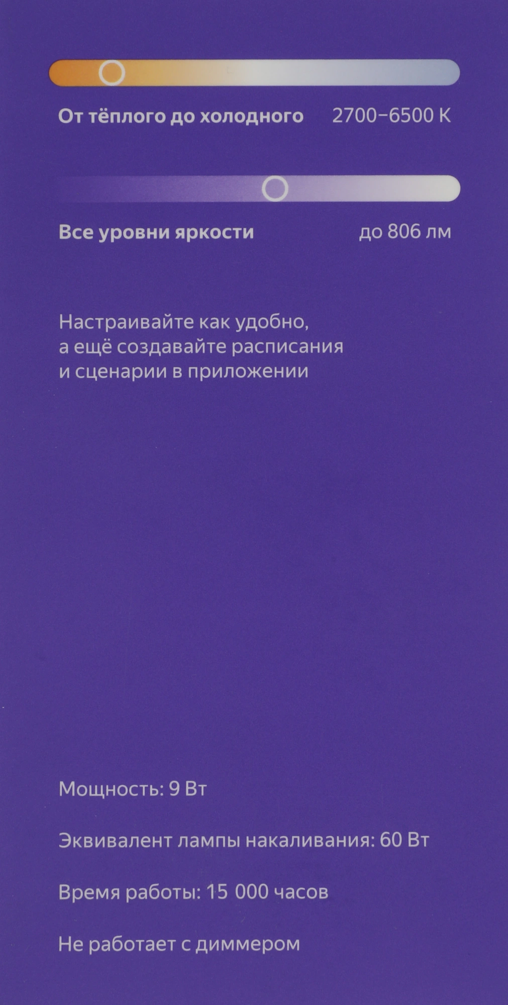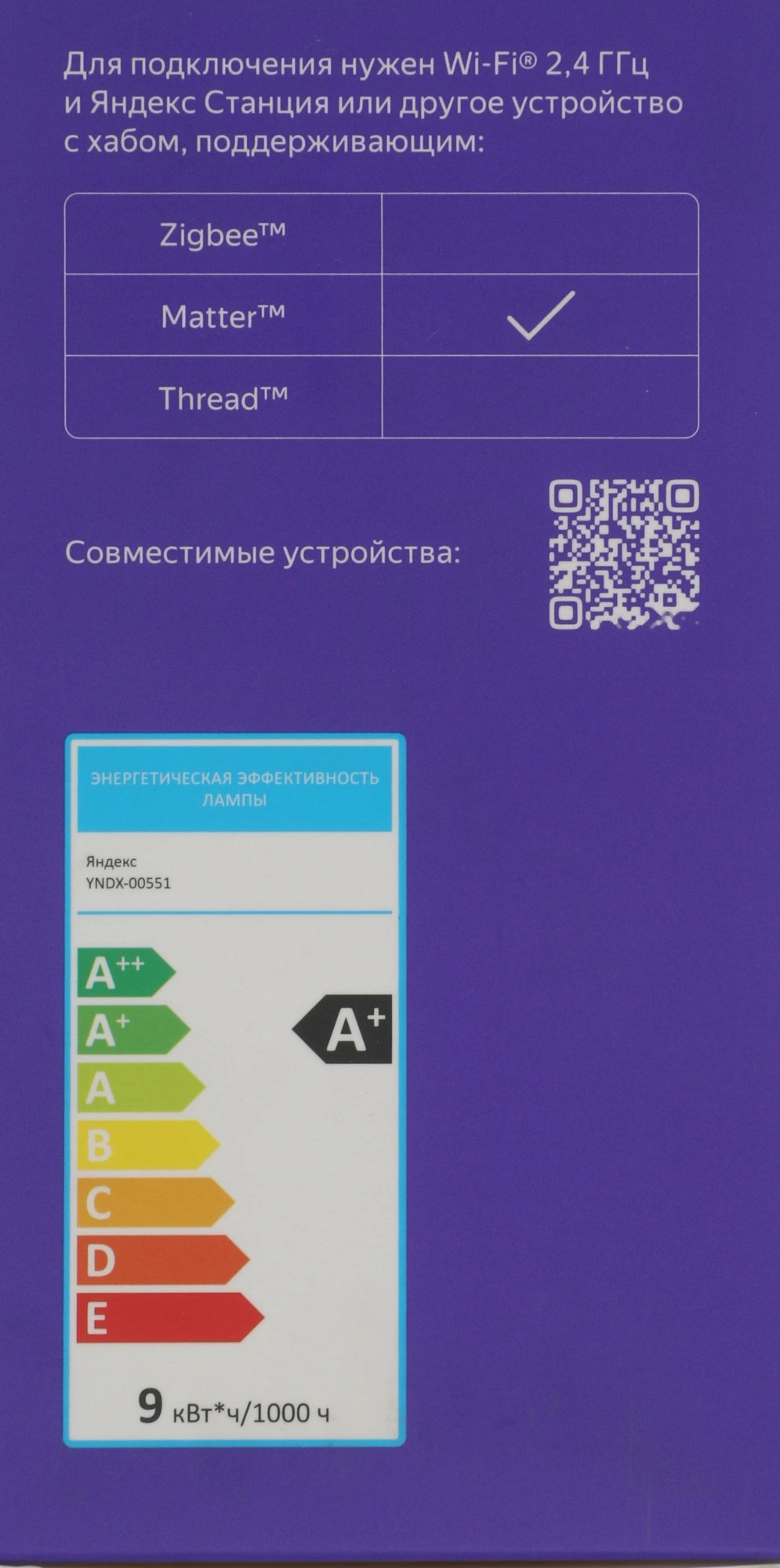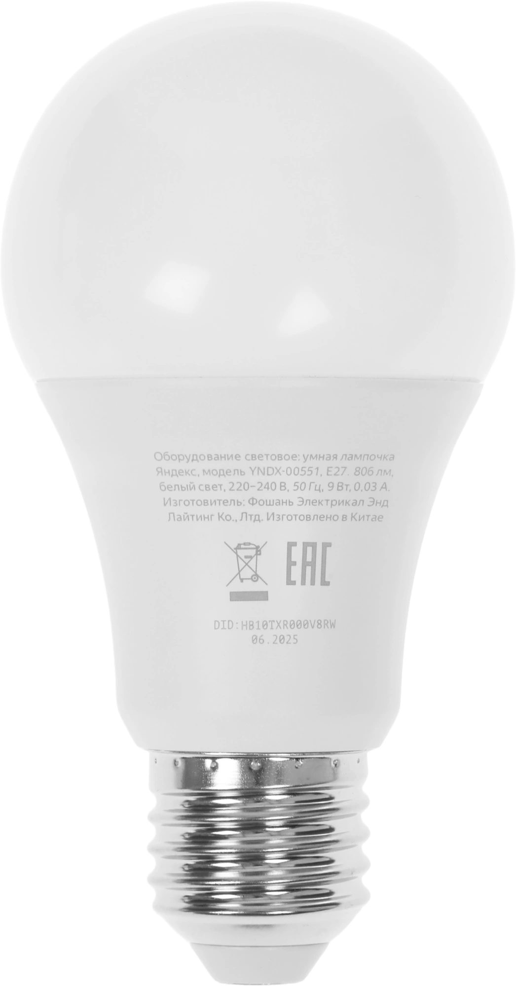 Умная лампочка Яндекс, Е27, белая, 806 Лм, Matter over Wi-Fi