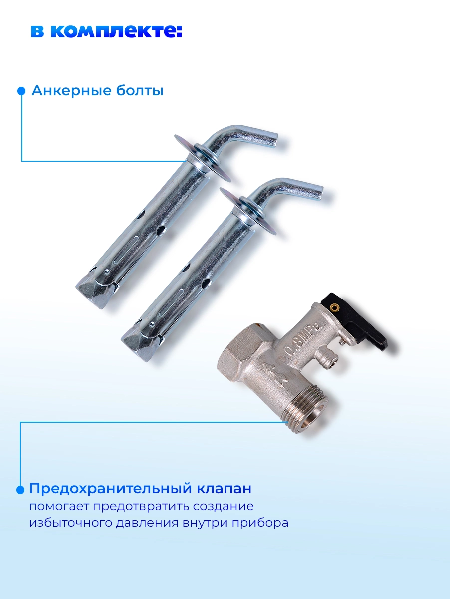 магниевый анод, предохранительный клапан, УЗО