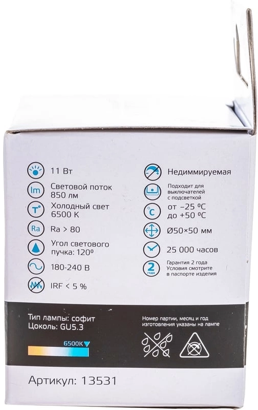 11Вт цок.:GU5.3 софит 220B св.свеч.бел.хол. MR16 ...