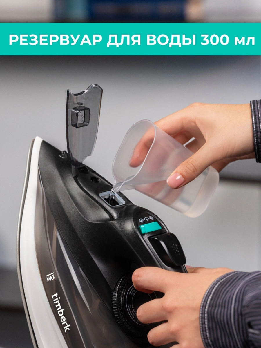 Паровой удар до 190 г/мин и увеличенный резервуар для воды – 300 мл позволяют с лёгкостью отпаривать большое количество одежды.