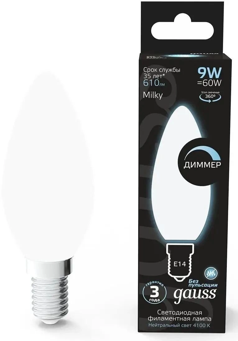 9Вт цок.:E14 свеча 220B св.свеч.бел.нейт. (упак.:...