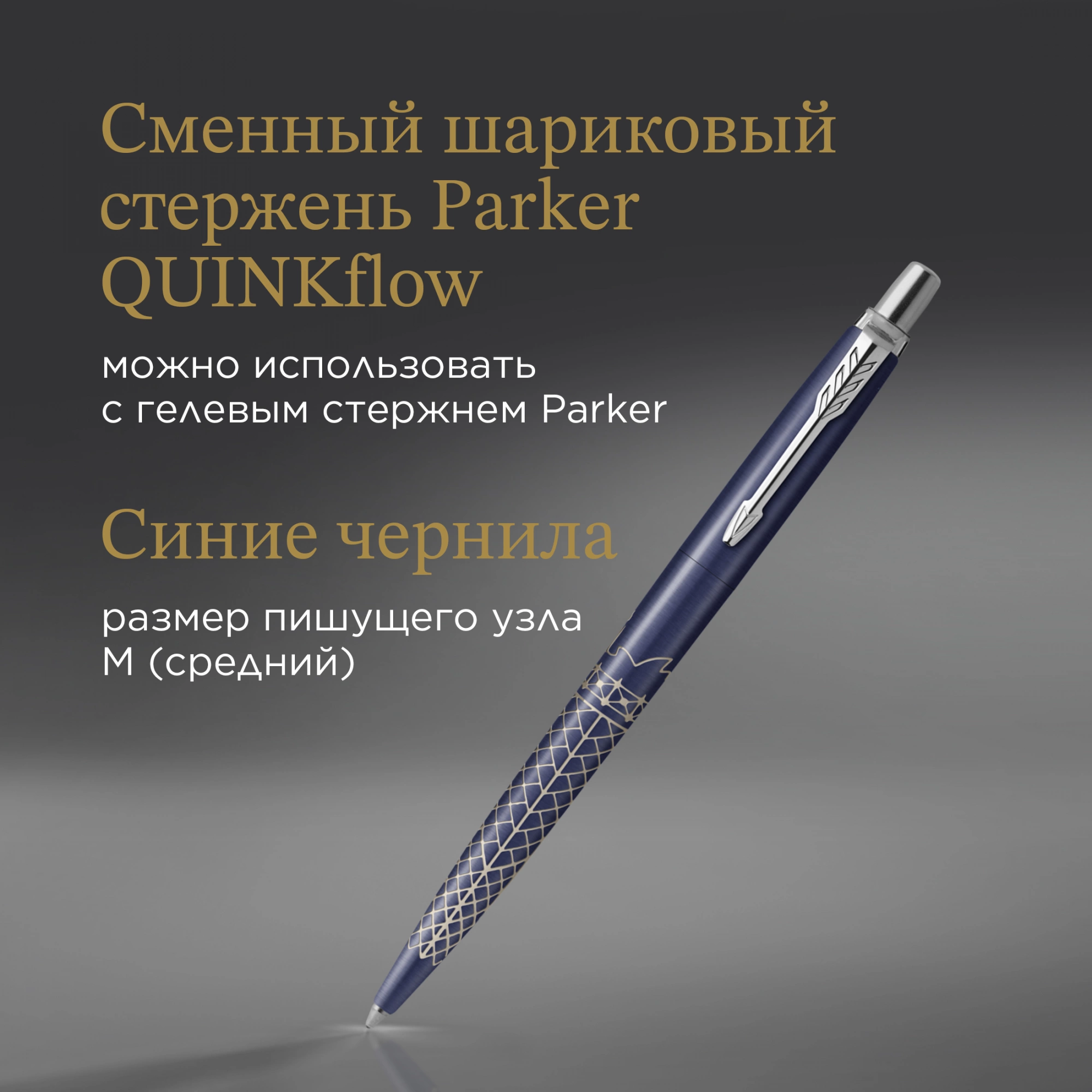 Подходят оригинальные сменные стержни Parker для шариковых ручек, а так же с гелевыми чернилами.