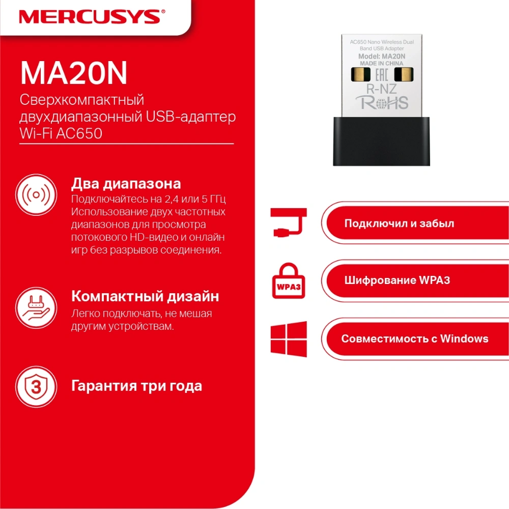 Сетевой адаптер Wi-Fi Mercusys MA20N