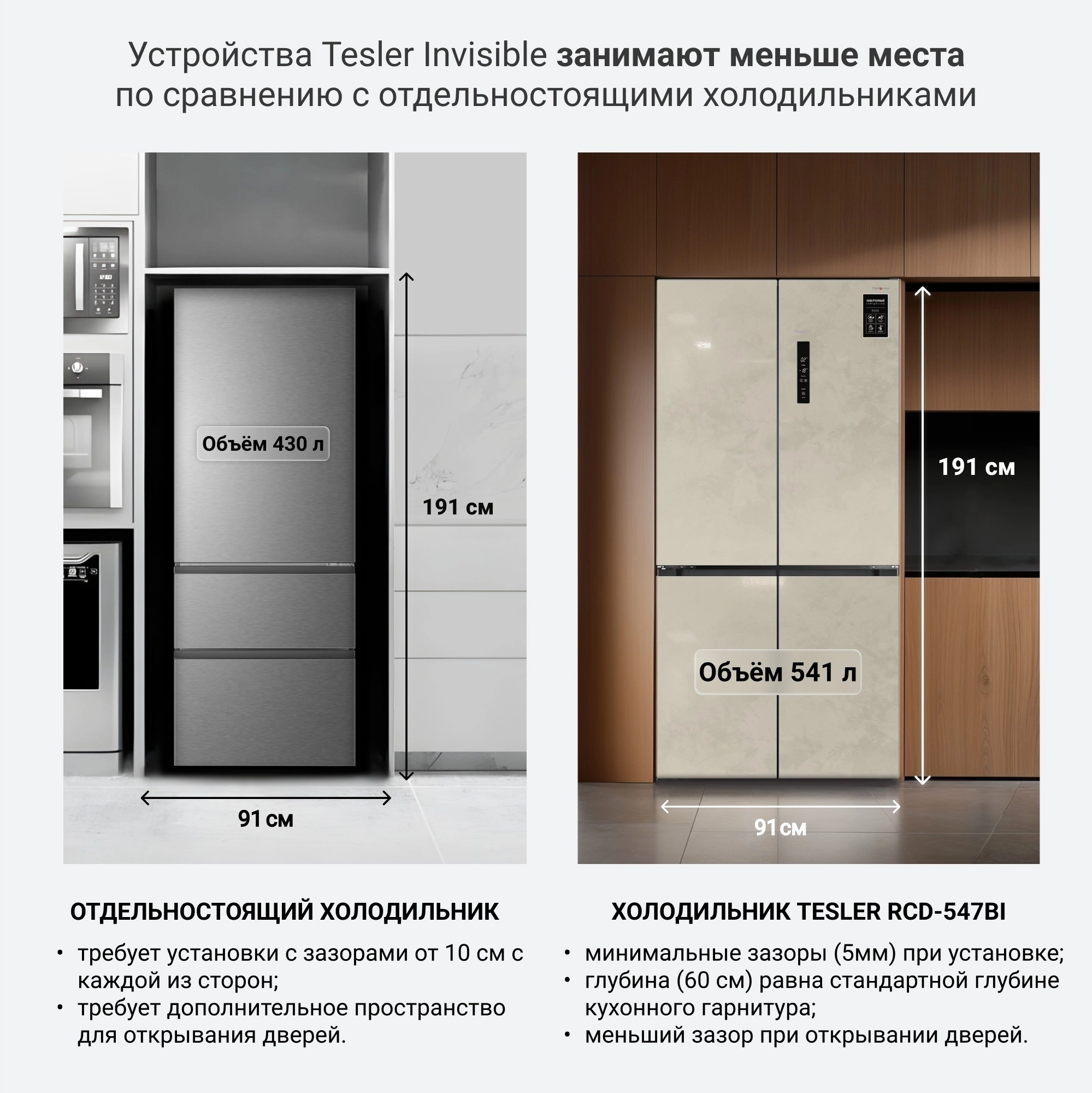 СОВМЕЩАЕТ ПРЕИМУЩЕСТВА ОТДЕЛЬНО СТОЯЩИХ И ВСТРАИВАЕМЫХ ХОЛОДИЛЬНИКОВ