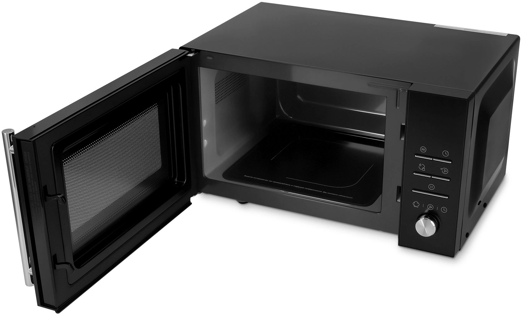 Модель оснащена автоматикой, которая экономит время. Автоматическая разморозка корректно работает по весу, автоматический разогрев выбирает оптимальные параметры, а технология плоского дна без поворотного диска увеличивает полезный объем камеры и делает работу тише. При необходимости можно остановить платформу, что удобно при использовании нестандартной посуды. Внутренняя эмаль легкой очистки устойчива к царапинам и запахам, ухаживать за камерой легко.