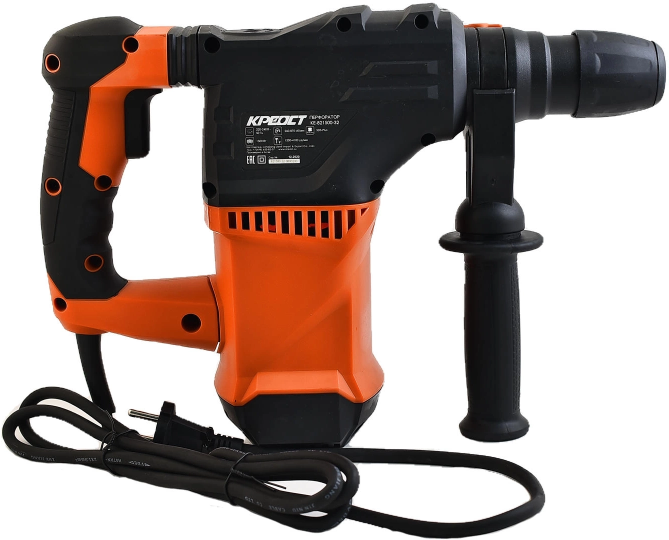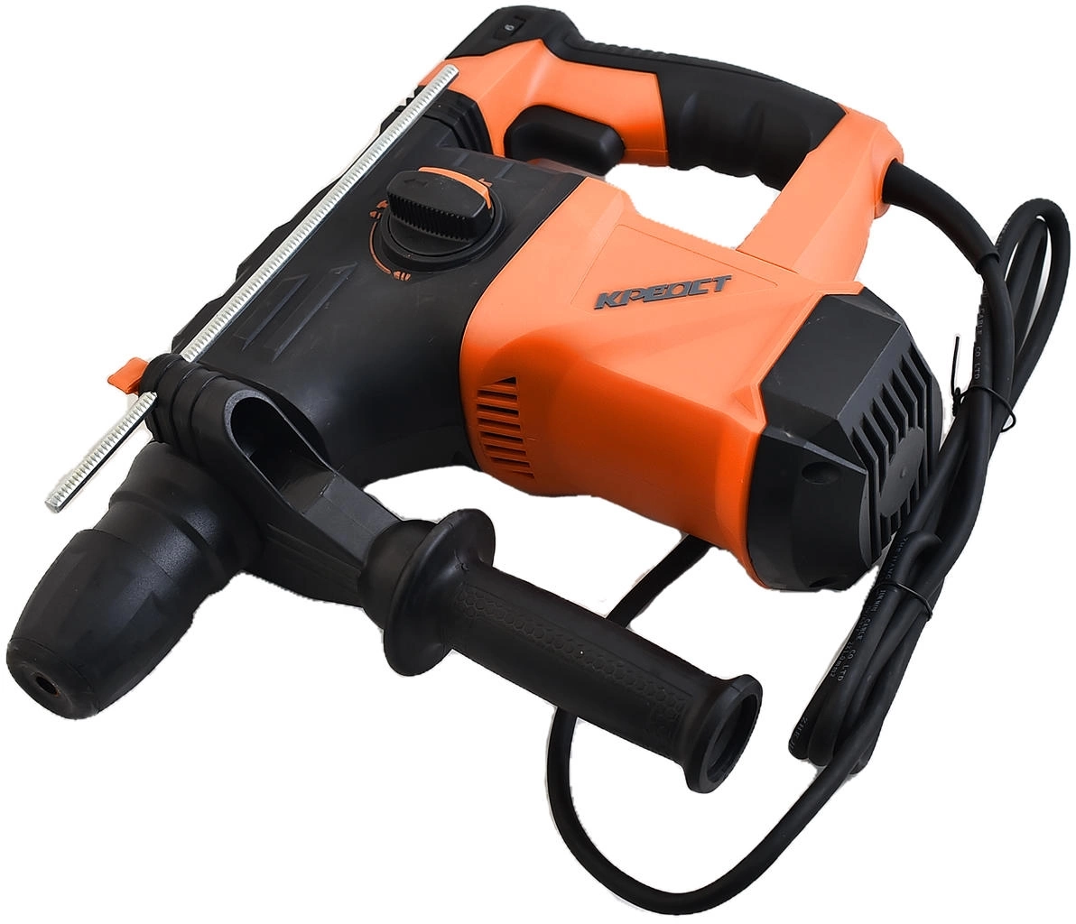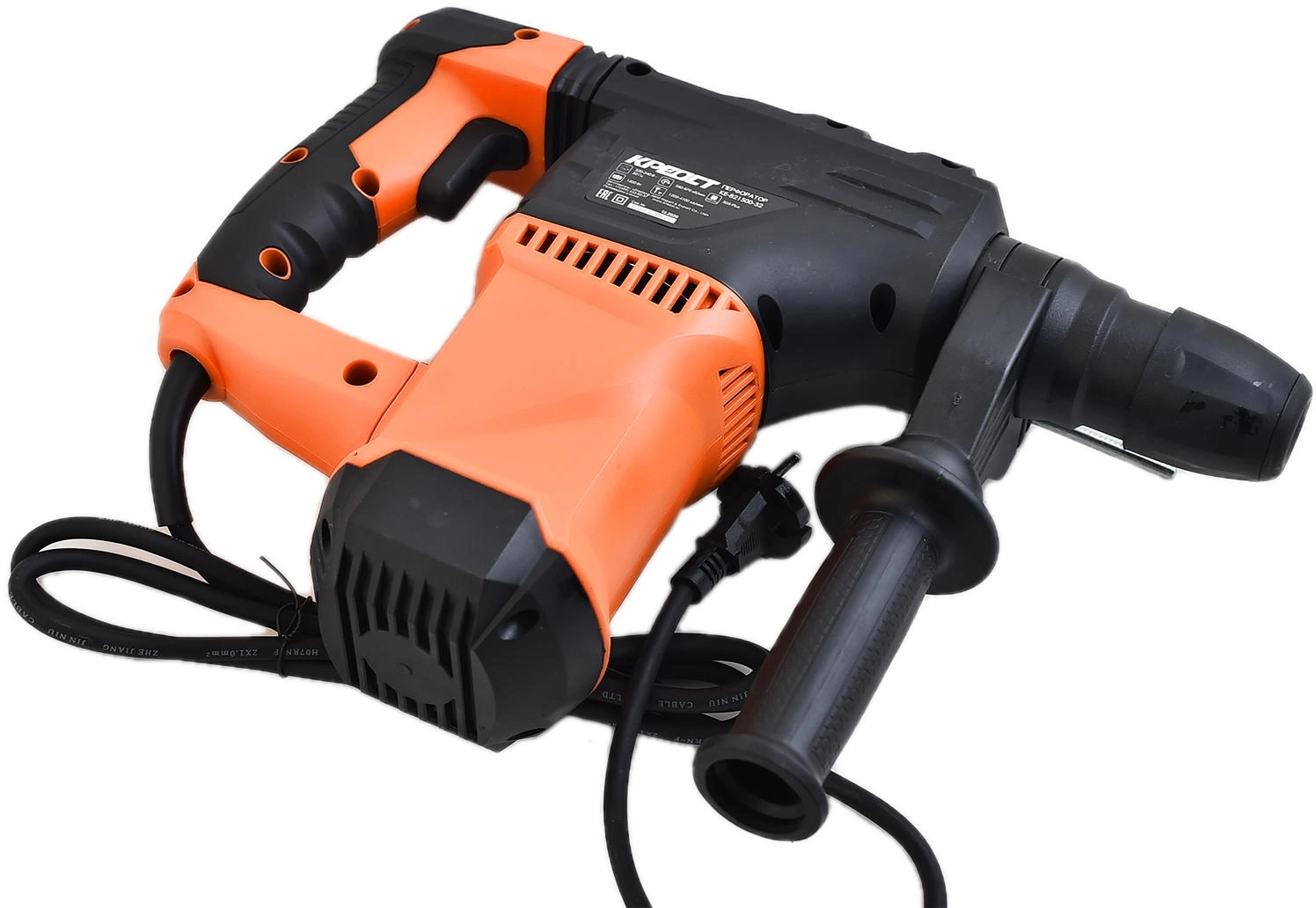 Электрический перфоратор Креост KE-821500-32 питается от сети. Имеет ограничитель глубины сверления и D-образную рукоятку. Устройство предназначено для работ по дереву, бетону и металлу. Модель поддерживает три режима работы: долбление, сверление и сверление с ударом.