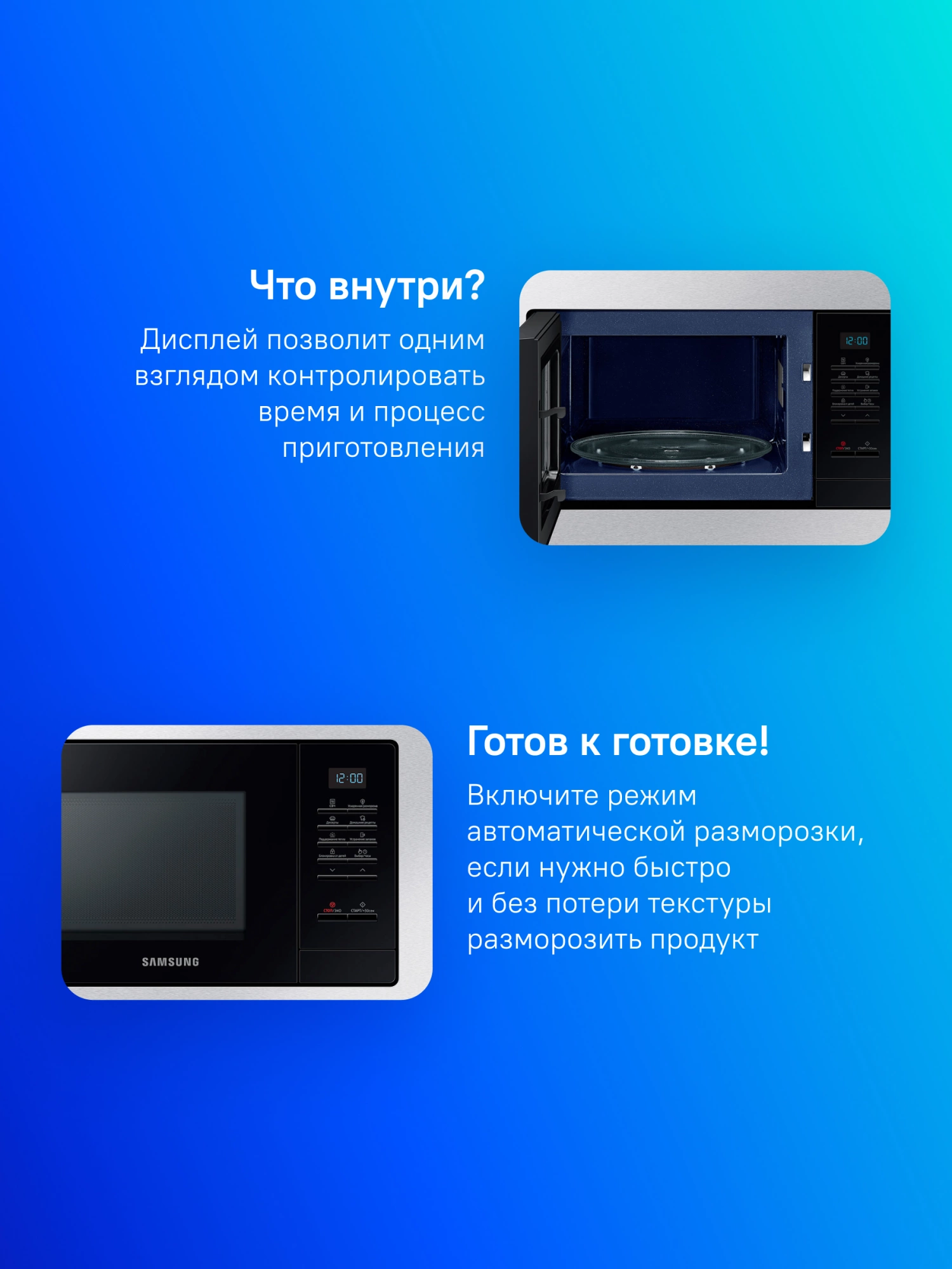 автоматическая разморозка, автоматический разогрев, автоматическое приготовление, соло