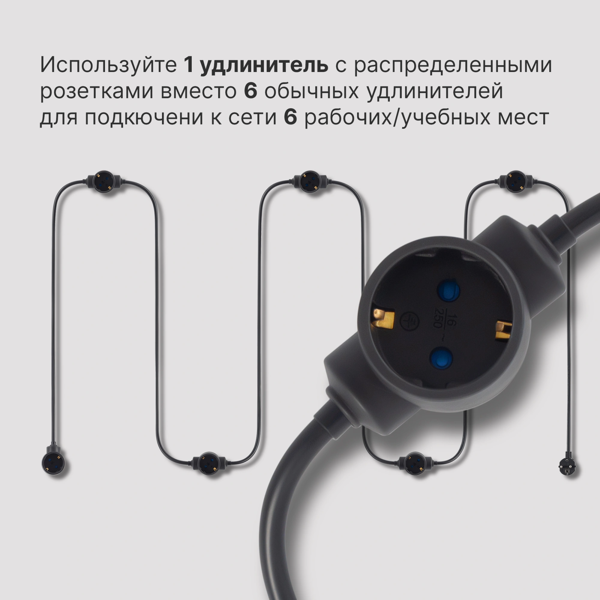 7м (6 розеток) черный (пакет ПЭ)
