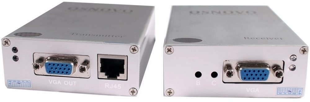 Комплект (передатчик+приёмник) для передачи VGA и аудиосигнала по кабелю UTP CAT5 до 100м. Разрешение до 1920х1440. В комплекте: БП DC9V(1A) 2 шт. Размеры передатчика (ШxВxГ): 70х25х110мм. Размеры приёмника (ШxВxГ): 70х25х110мм.