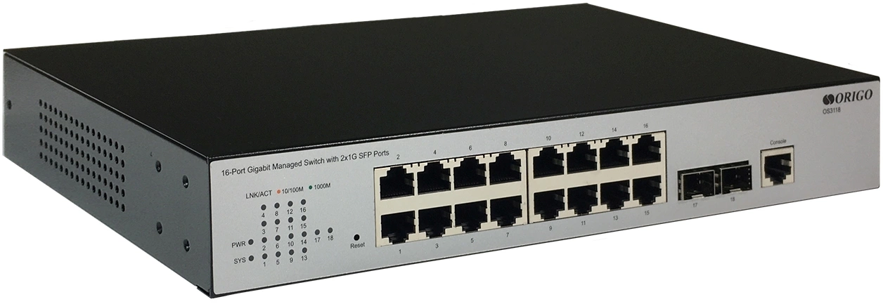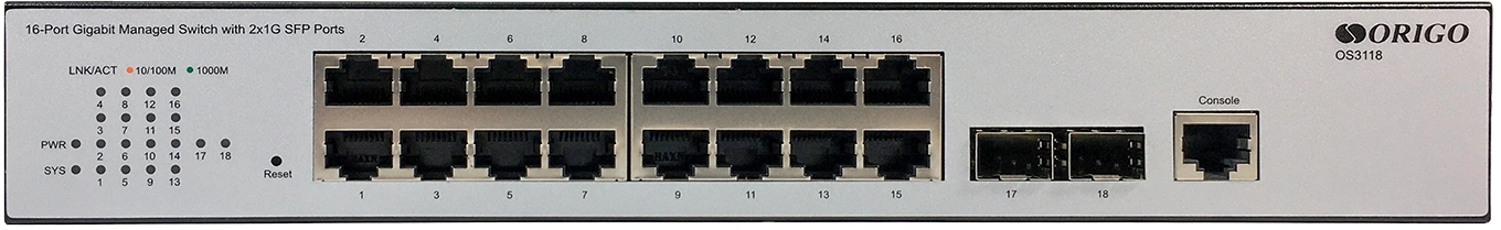 Коммутатор OS3118, кабель питания, консольный кабель с разъемом RJ-45, комплект для установки в 19-дюймовую стойку, краткое руководство по установке.