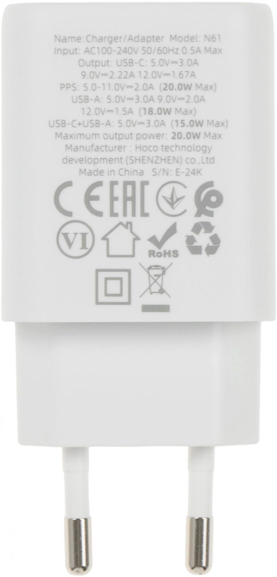 20W 3A (PD+QC) USB-A/Type-C универсальное белый (...